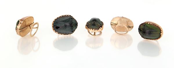 Gruppo di 5 bottoni da sparato antichi in oro e bachelite