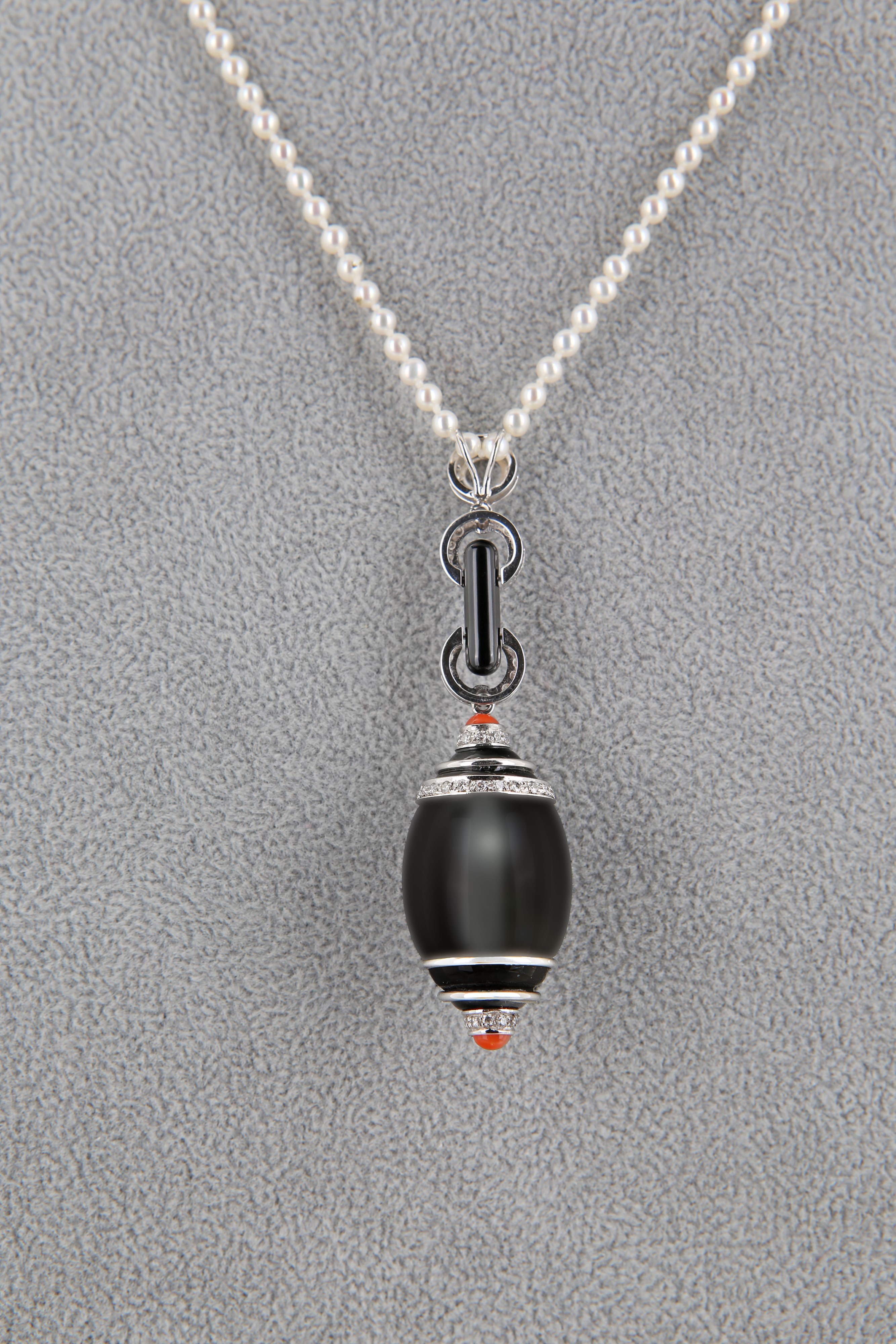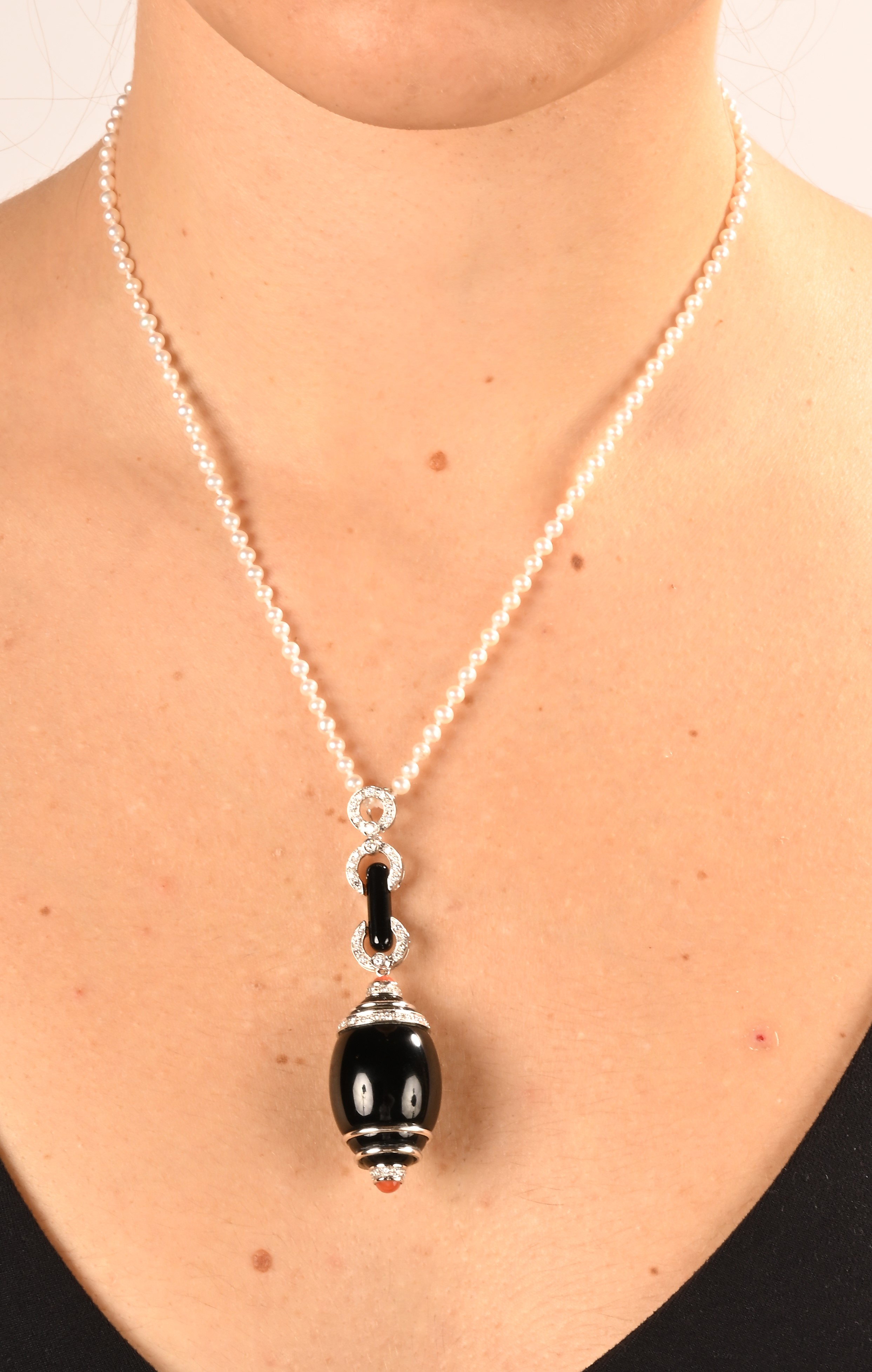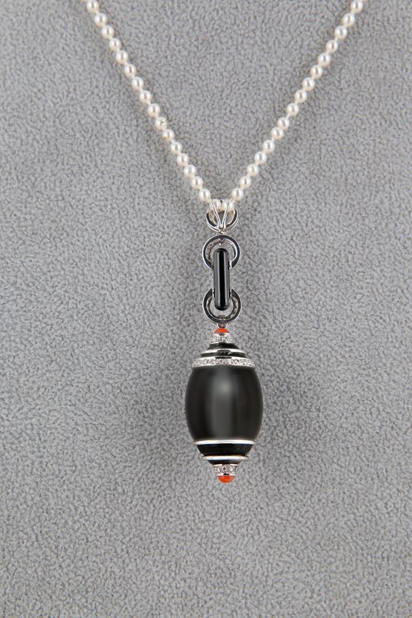 Pendente in oro brillanti, onice e rubini
