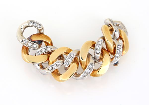 Oro giallo e bianco 750/000. Peso complessivo gr. 23,50
