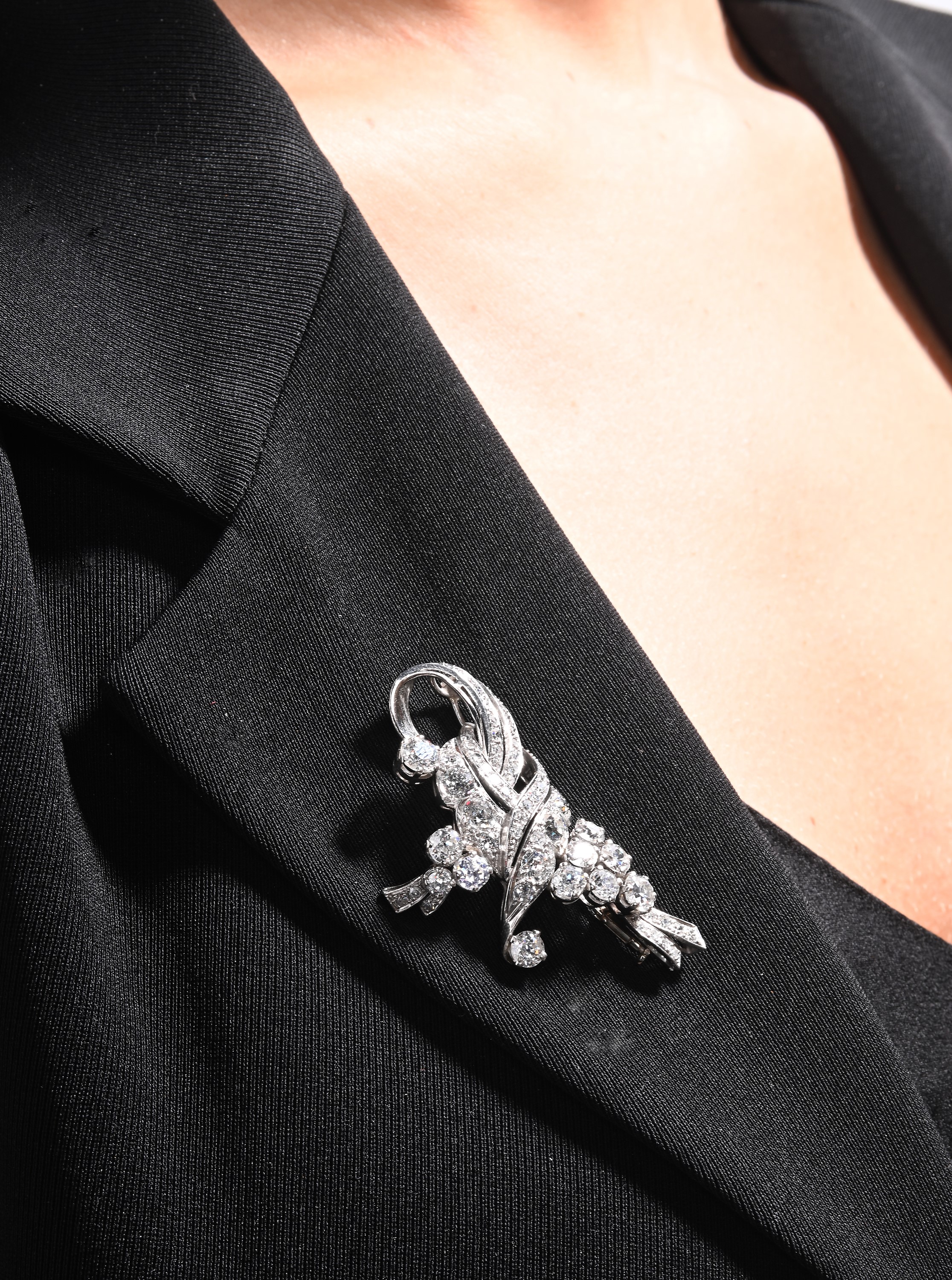 Oro bianco 750/000. Diamanti naturali in taglio vecchia Europa ct. 5,50 ca. Peso complessivo gr 16,60