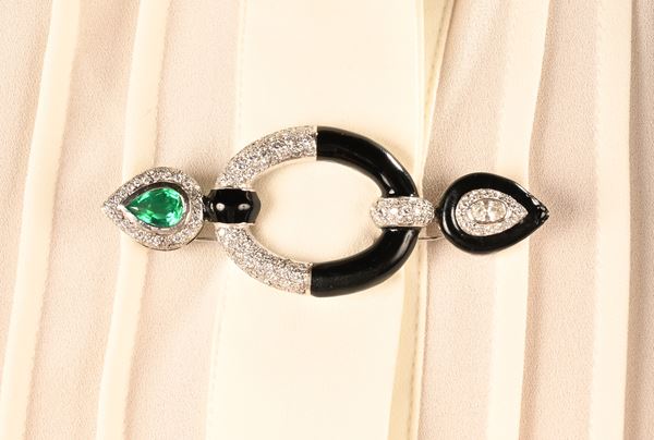Oro bianco 750/000. Diamante solitario in taglio ovale ct. 0,50, diamanti in taglio rotondo brillante ct. 2,60 ca. Peso complessivo gr. 20,50