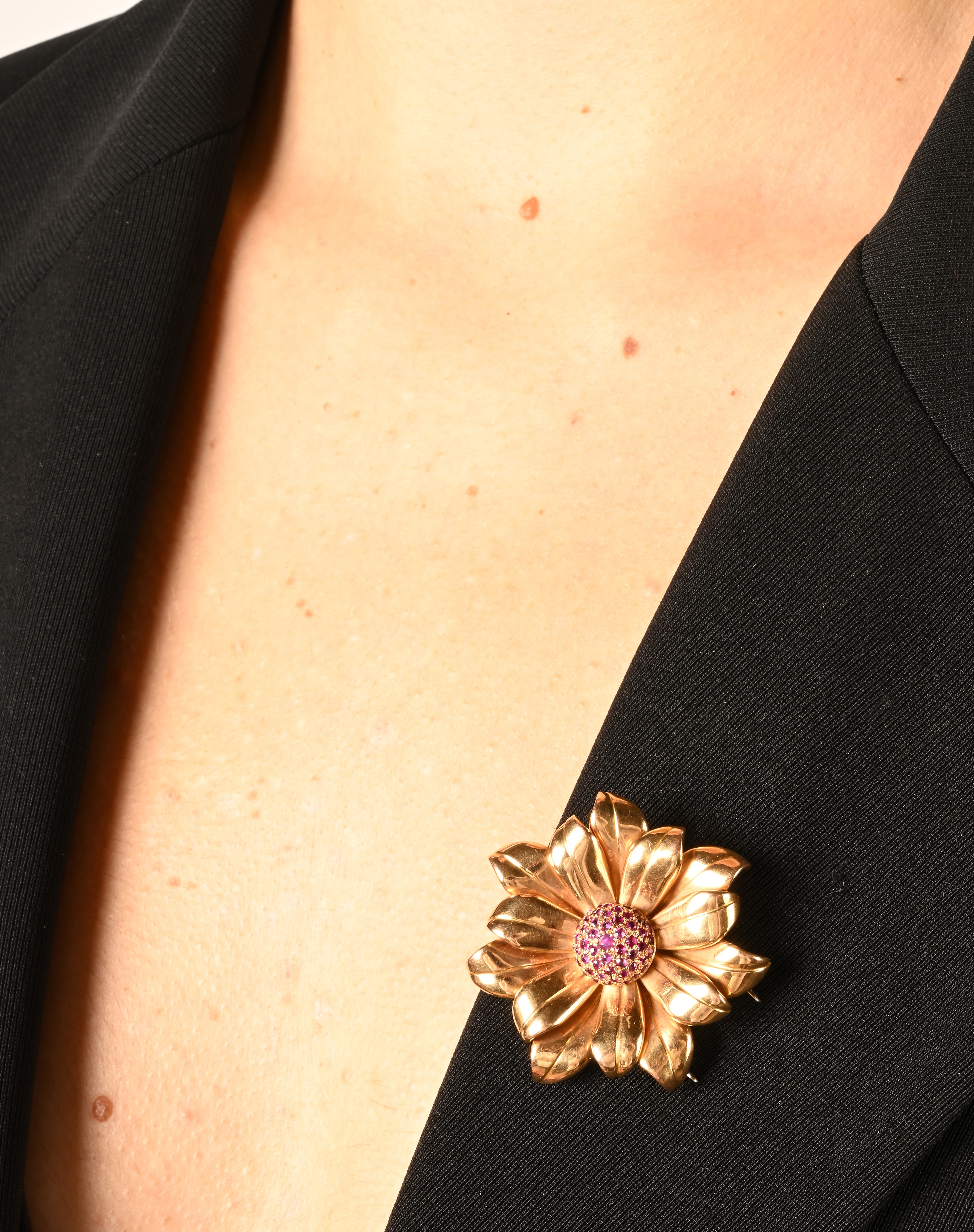 Oro giallo 750/000. Rubini in taglio rotondo brillante. Peso complessivo gr. 17,20