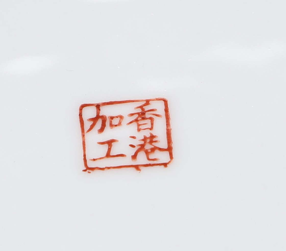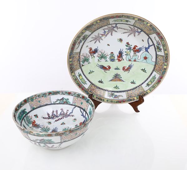 decorati da paesaggio con galli rossi; recano entrambe marchio in rosso