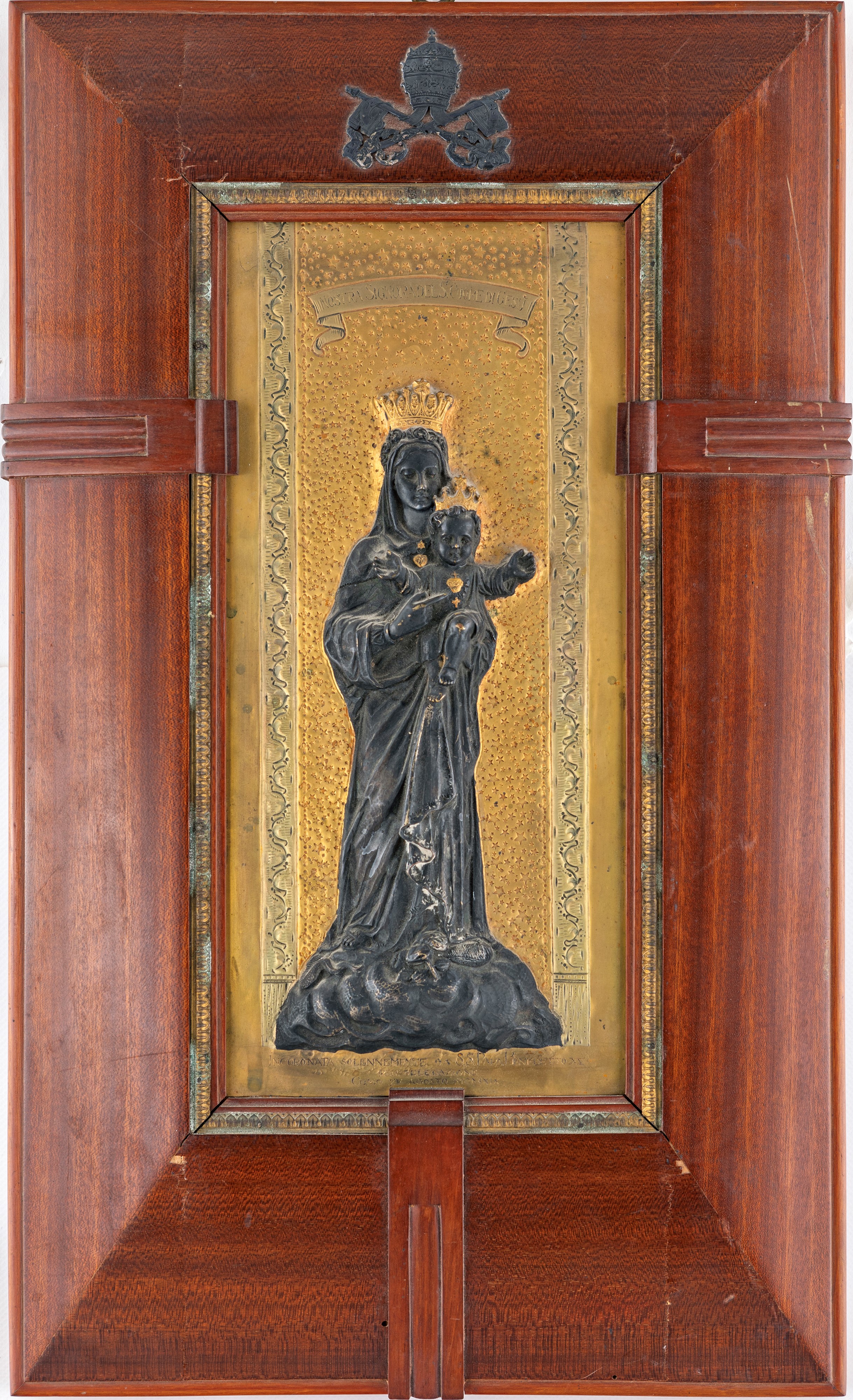 Bassorilievo in rame dorato e brunito raffigurante Nostra Signora del Sacro Cuore, inizi del XX secolo