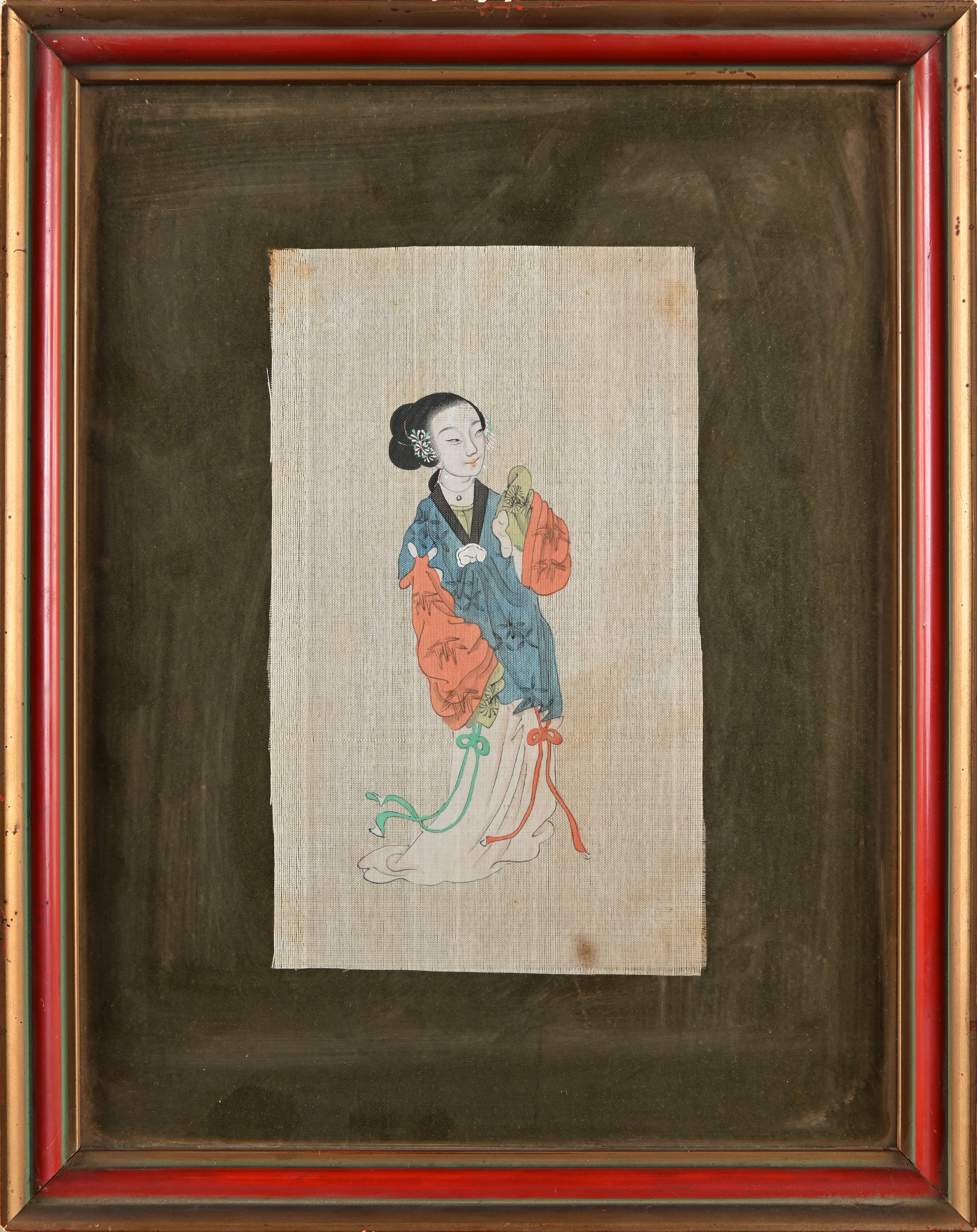 passe-partout dorato e cornice in legno dipinto. La dea Magu, dea della longevità è per la sua bellezza simbolo di salute e di guarigione del mondo che lei stessa protegge ed è considerata la custode della vitalità in tutta l’Asia orientale, non solo per i mortali ma anche nei cicli naturali della terra.