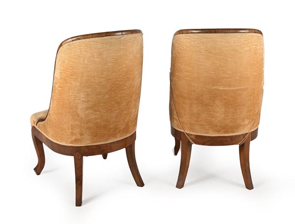 Coppia di poltroncine a gondola in noce, XIX secolo