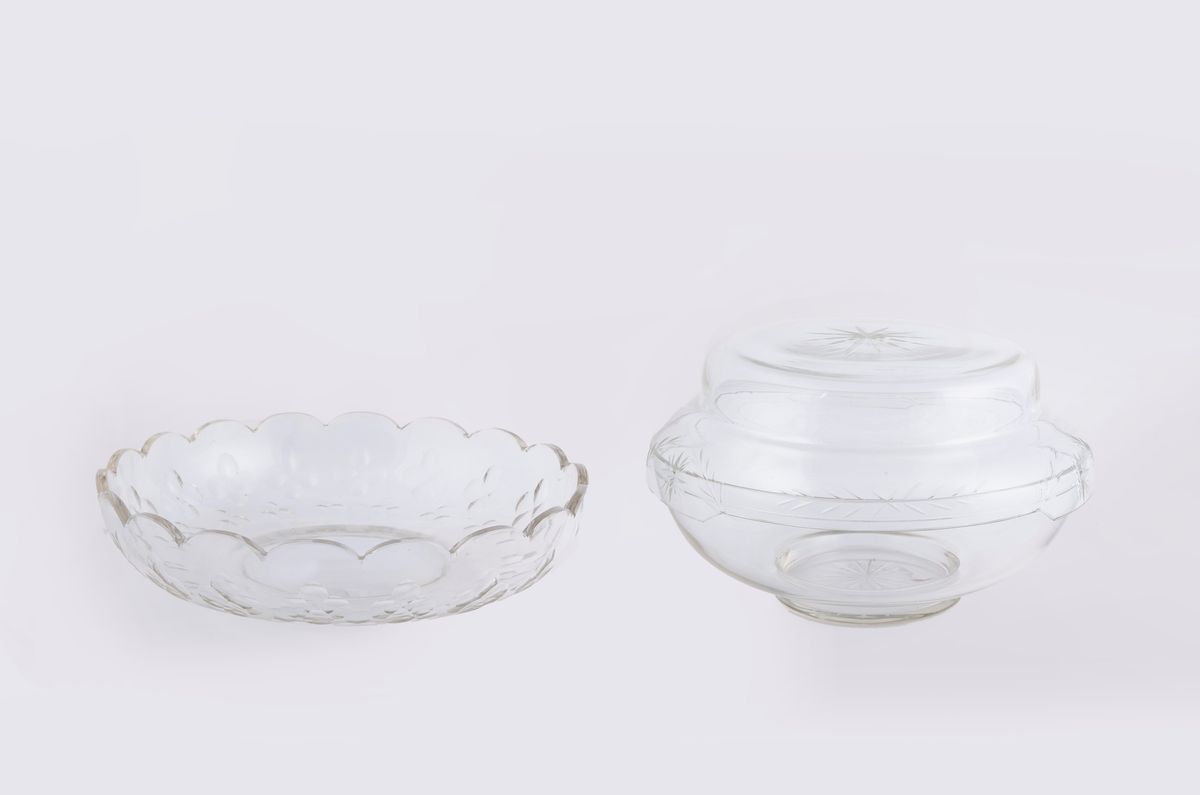 una con orlo centinato, l'altra sormontata da coperchio a cupola