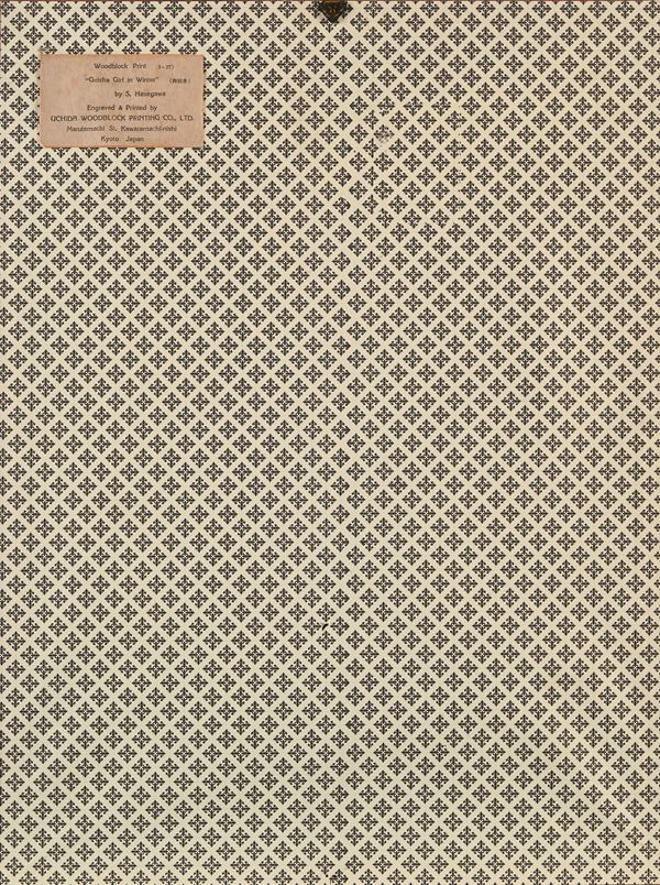Firmata sulla stampa. Al verso etichetta con iscritto Stampa xilografica di S. Hasegawa, inciso e stampato da Uchida Woodblock Printing co. ltd, Marutamachi St. Kawaramachi-nishi, Kyoto, Giappone. Non esaminata fuori dalla cornice