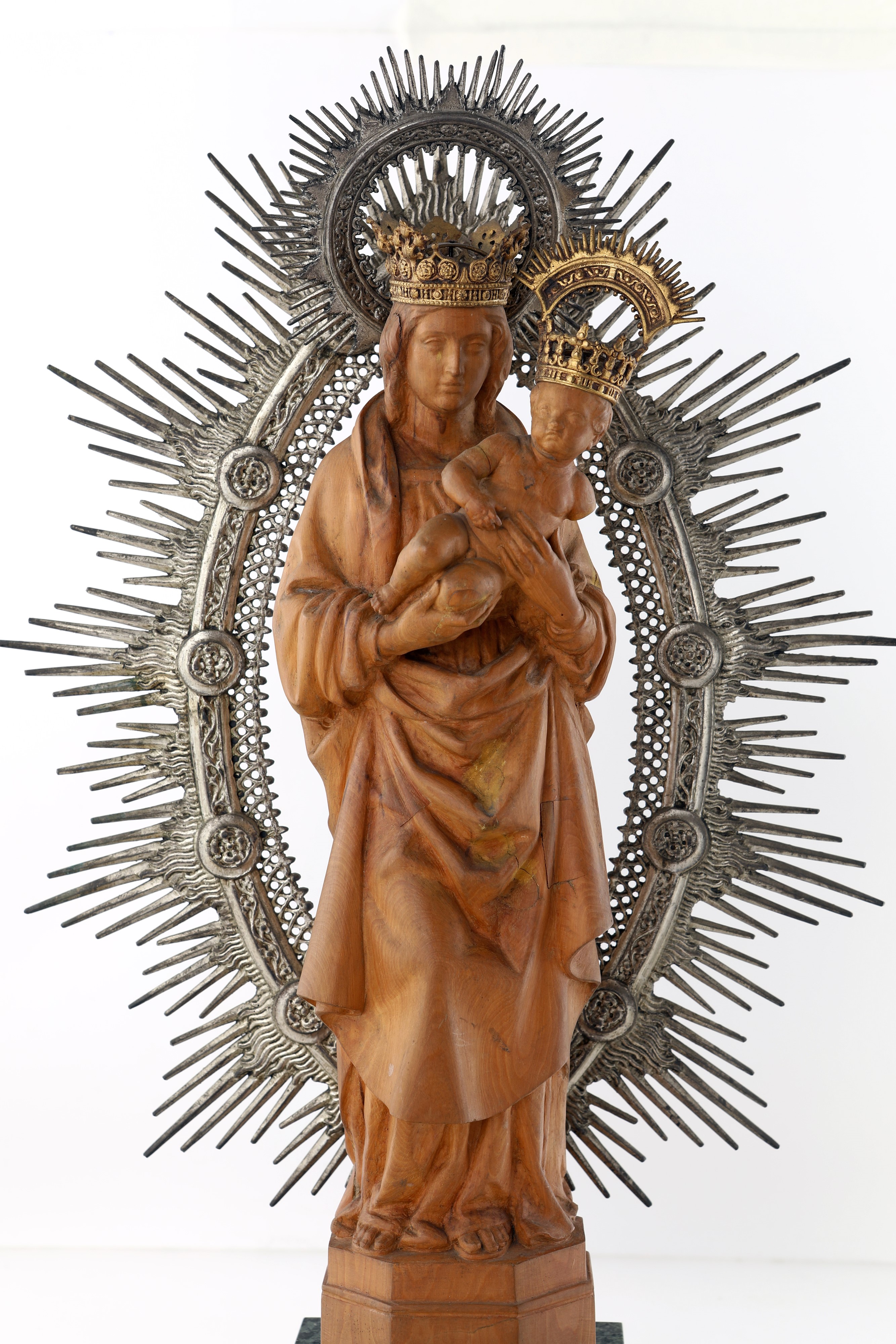 Madonna col Bambino (Vergine del Pilar) in legno e metallo argentato