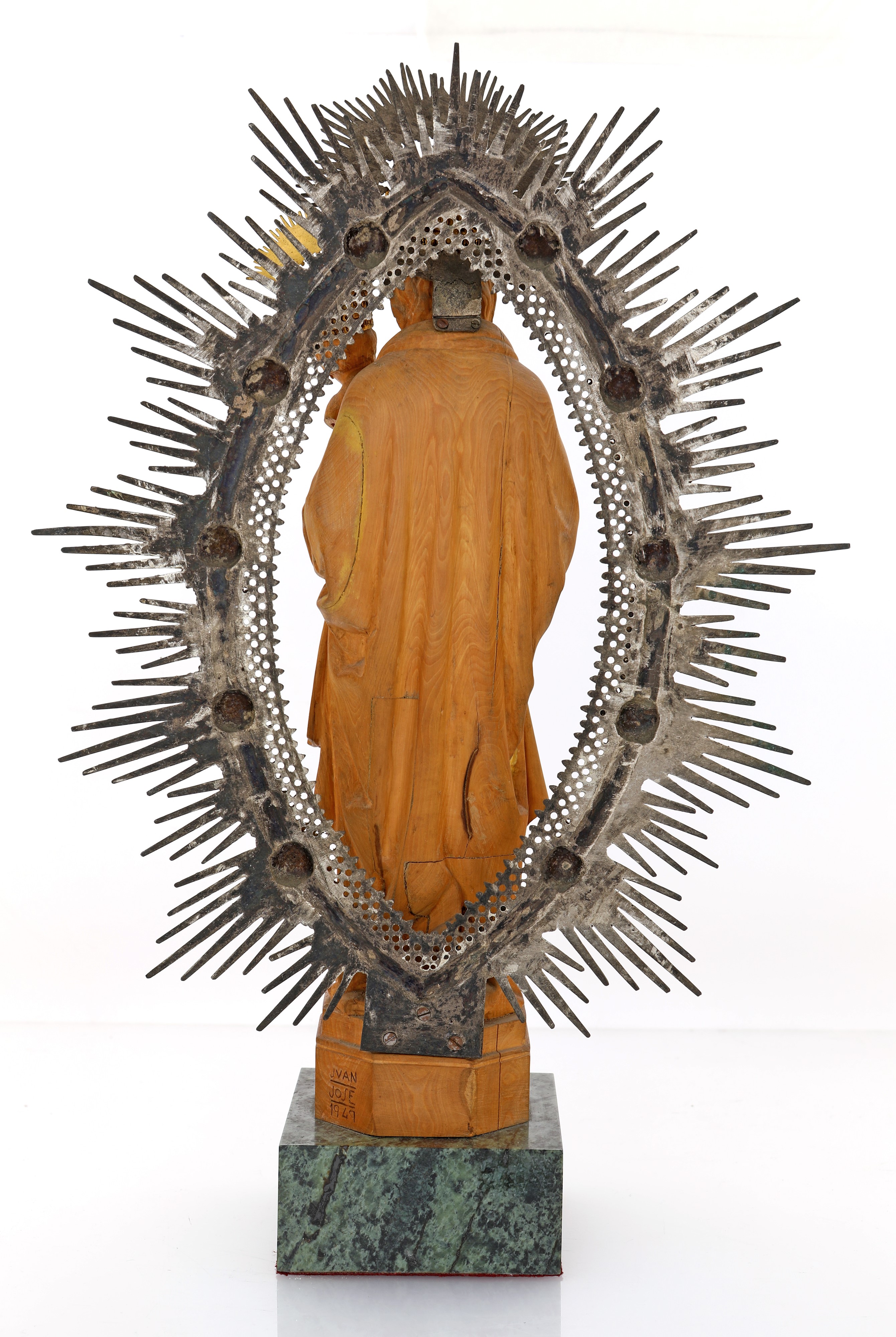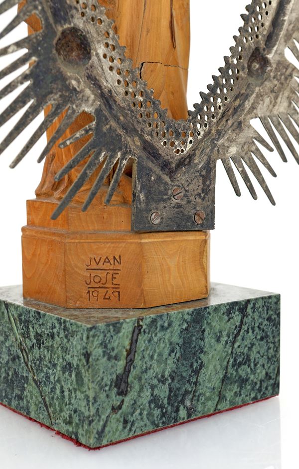 base a dado in marmo verde. Firmata e datata Juan Jose 1949