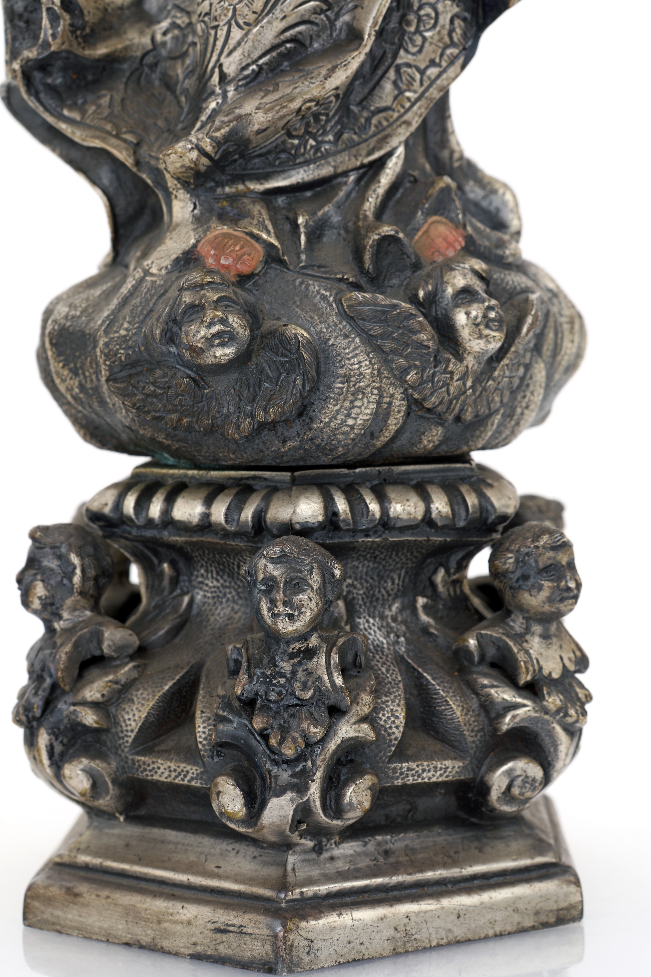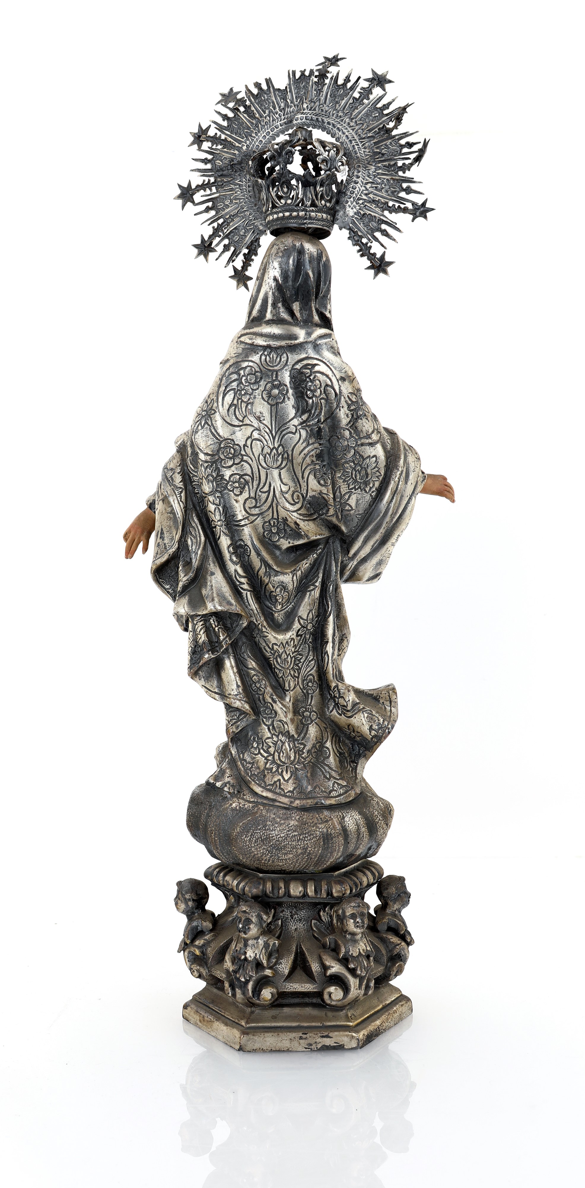 Vergine Immacolata in metallo patinato e dipinto