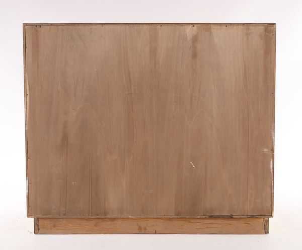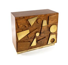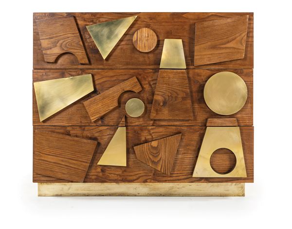 Struttura in legno di frassino, decorato a motivi geometrici in legno con rivestimento in ottone