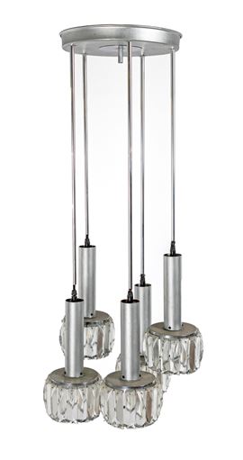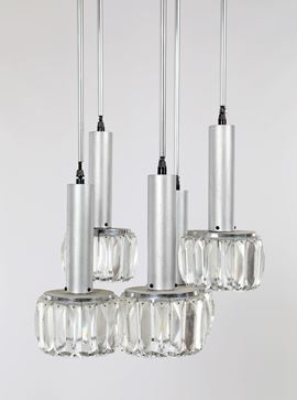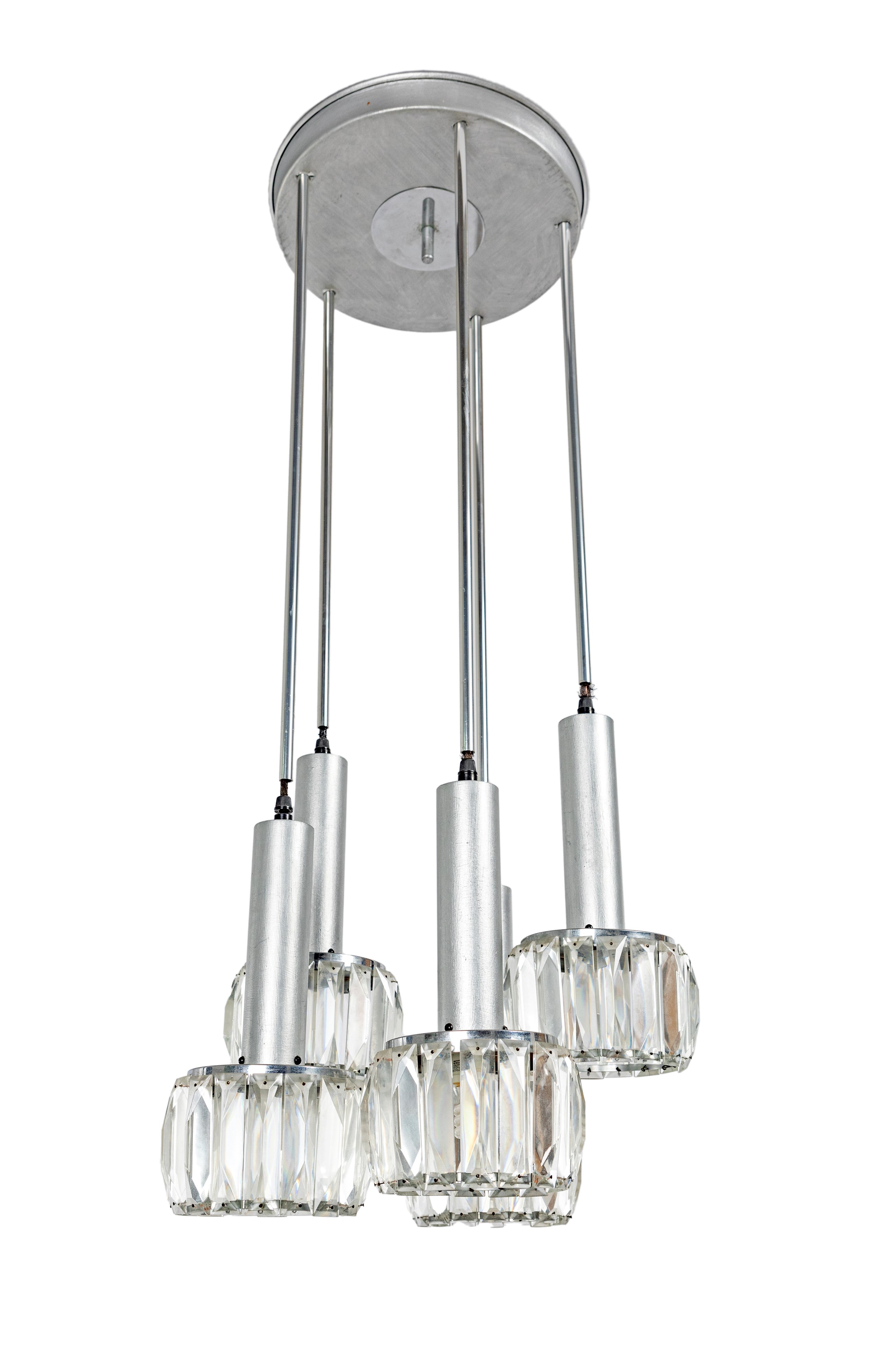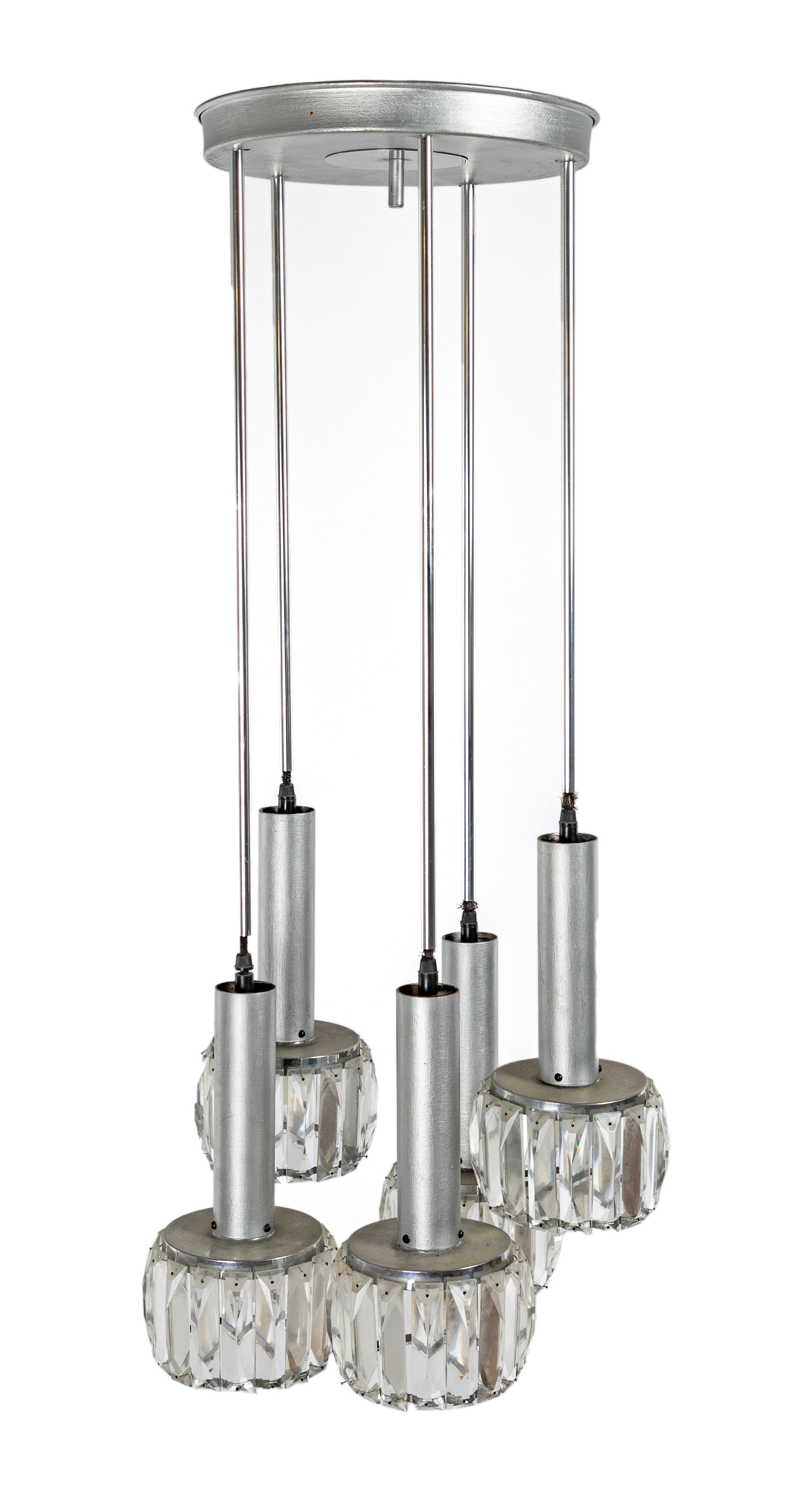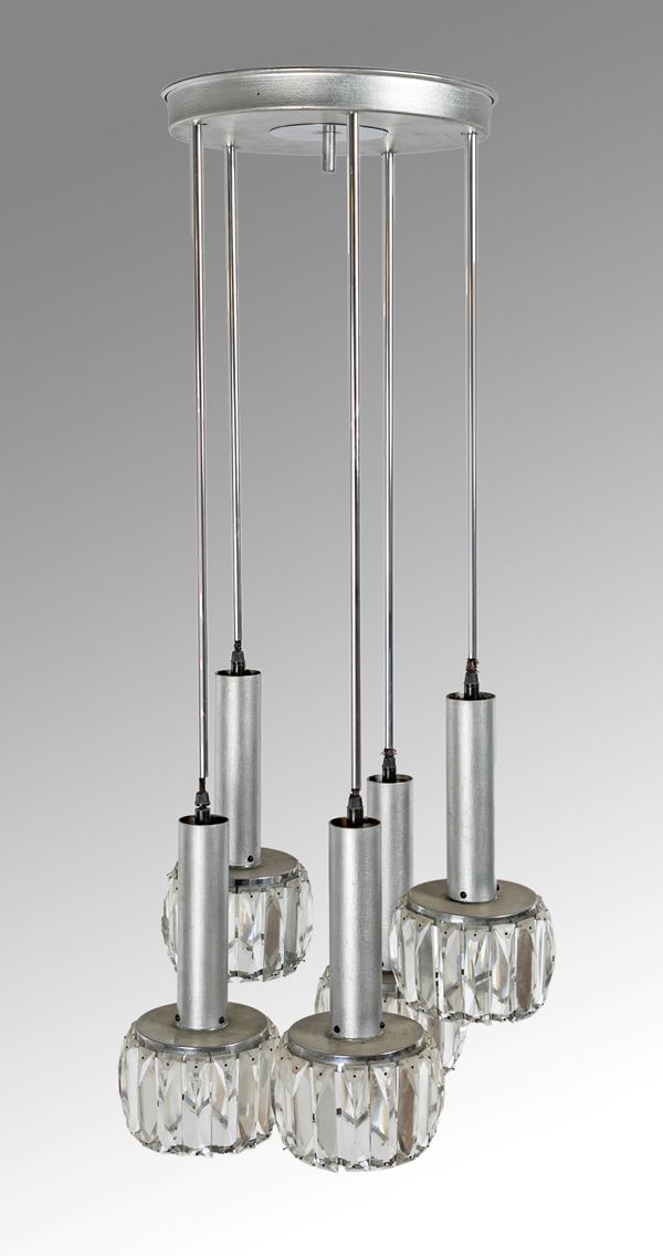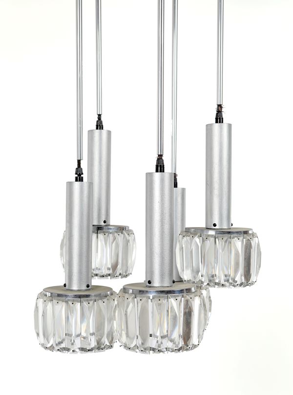 Lampadario a cinque luci da soffitto in metallo e cristallo, Anni '60