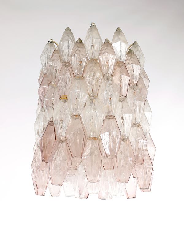 Struttura in metallo verniciato e poliedri in vetro di Murano trasparente e lavanda