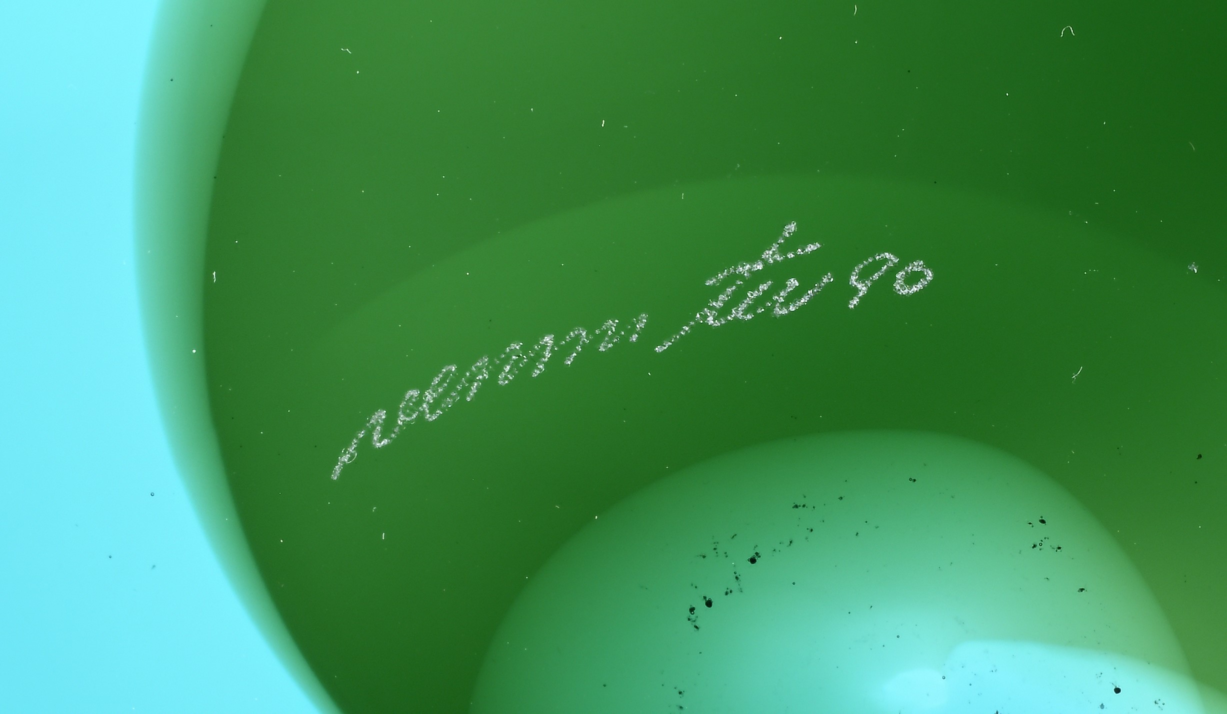 Firma e data incise. Etichetta adesiva Venini. Entro scatola originale