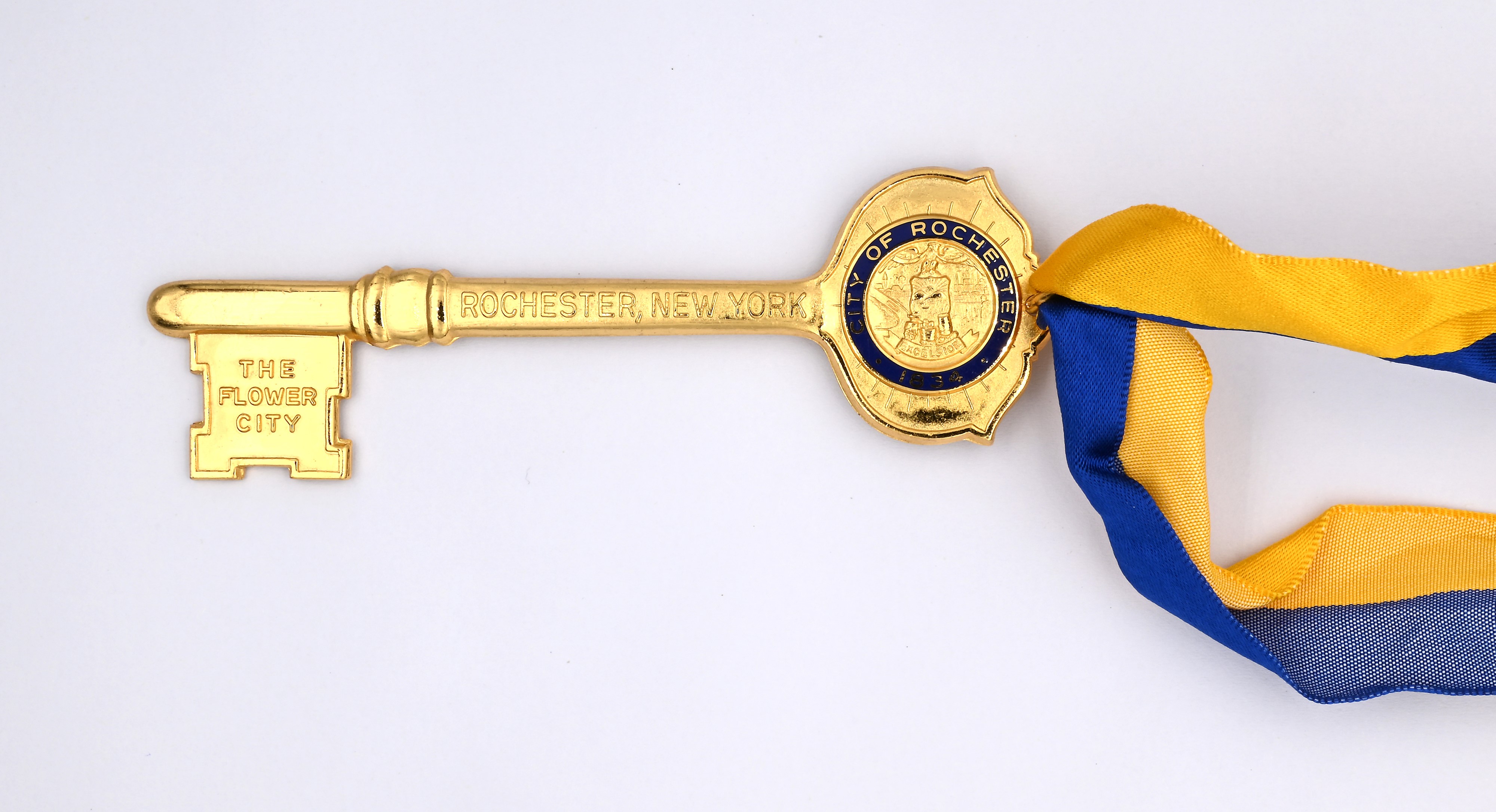 Chiave della città di Rochester nello Stato di New York in metallo dorato e smaltato, XX secolo