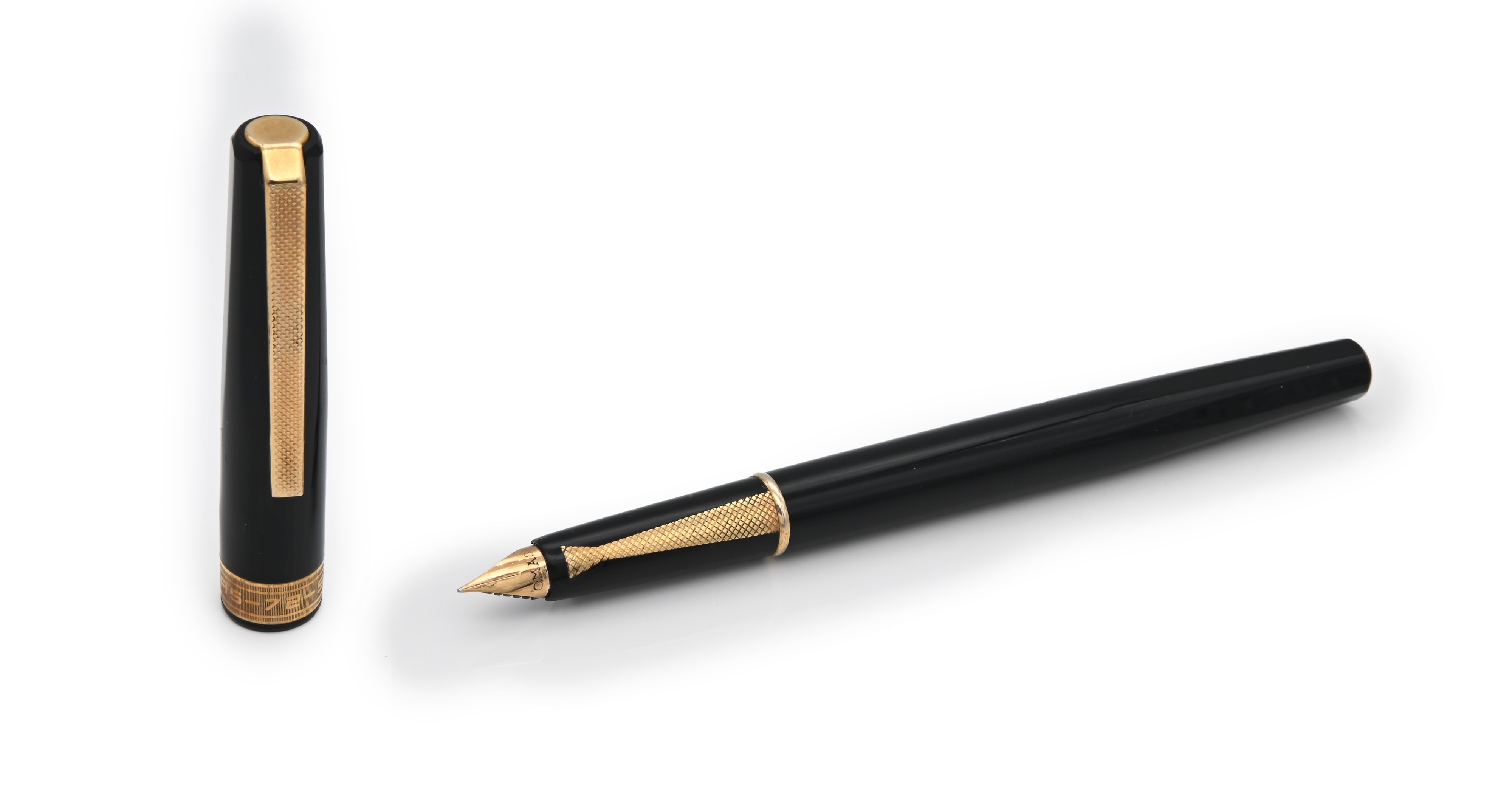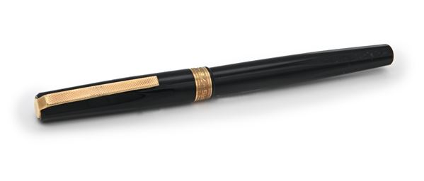 Omas 72 Super - Penna stilografica vintage in vernice nera con particolari dorati, Anni '70