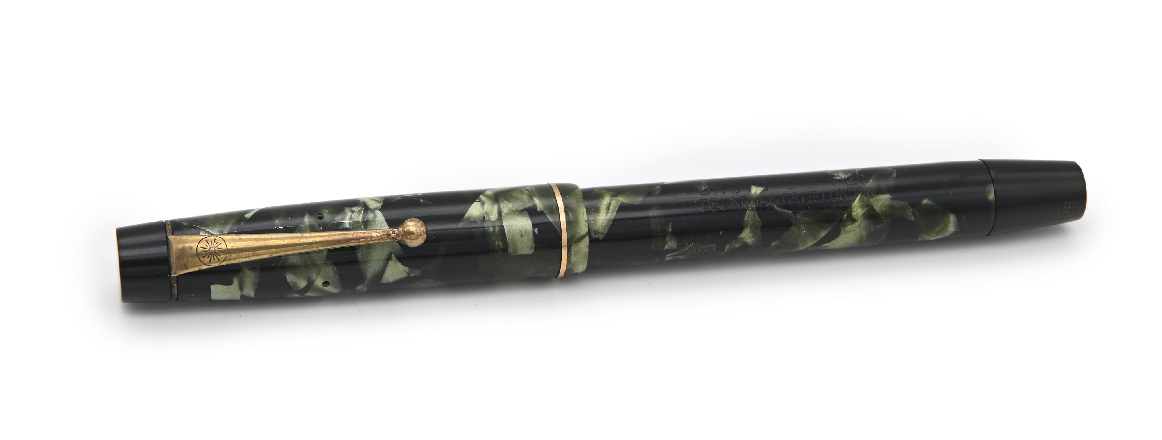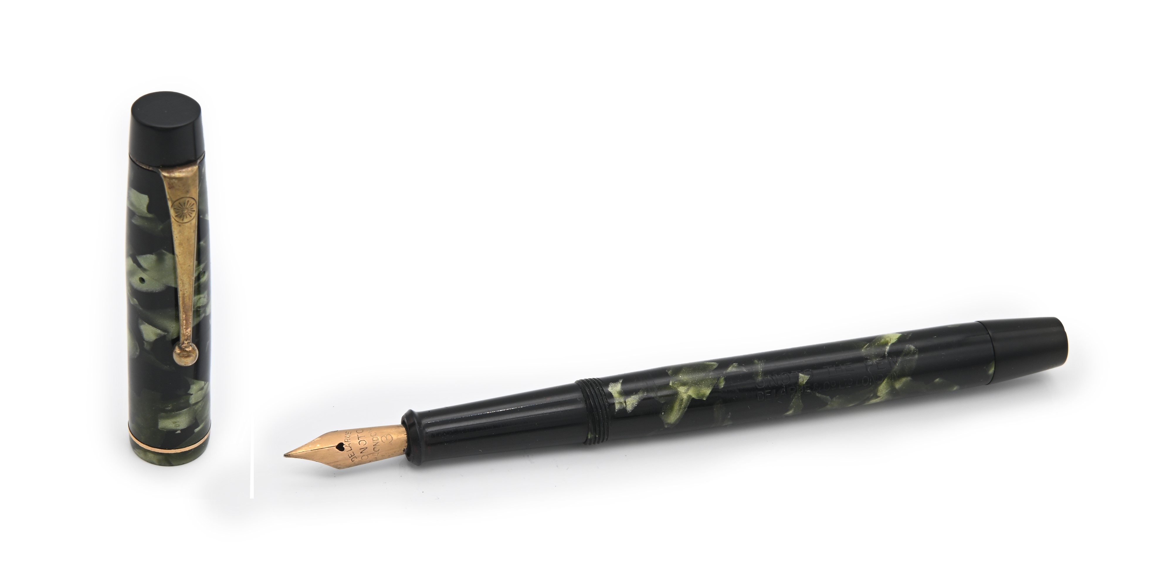 Onoto De La Rue - Penna stilografica vintage in celluloide marmorizzata con particolari dorati, anni '30