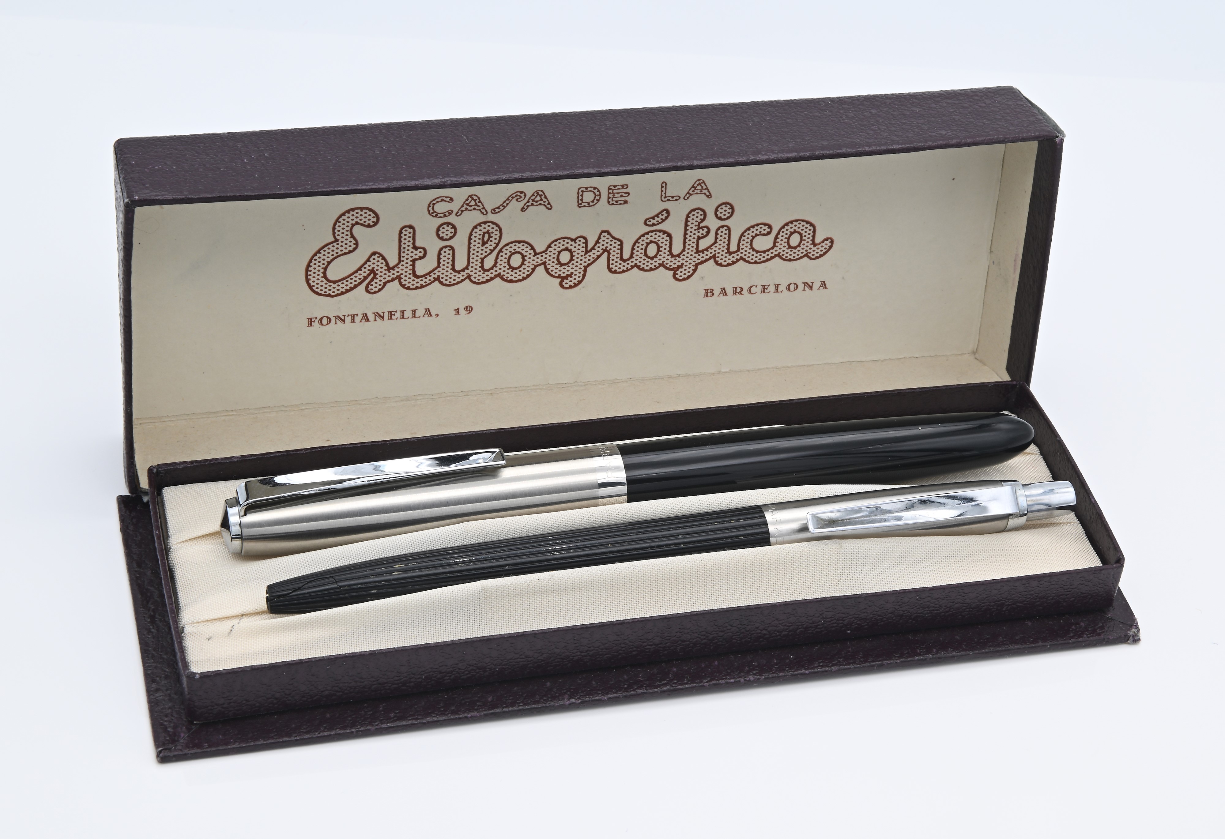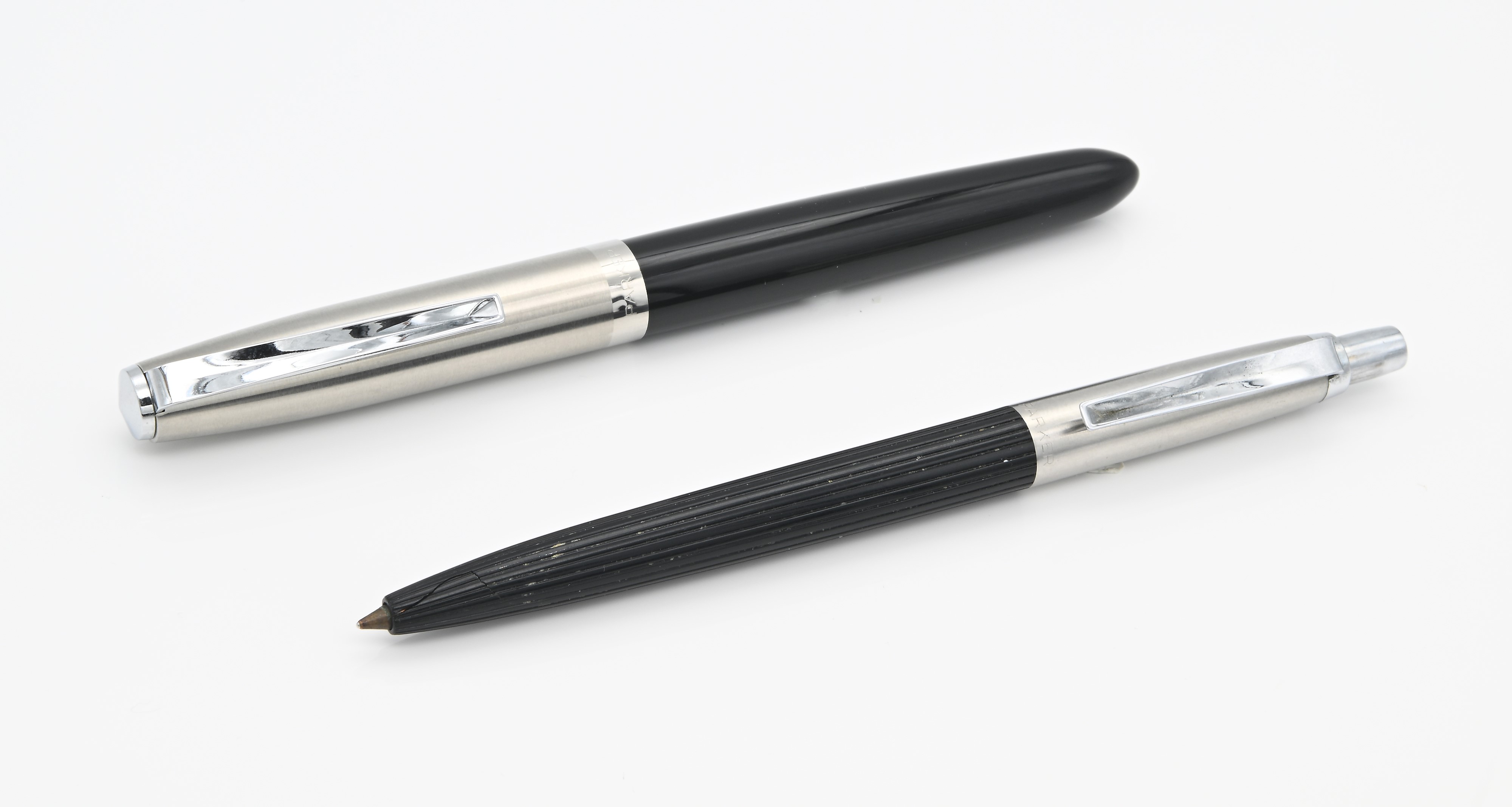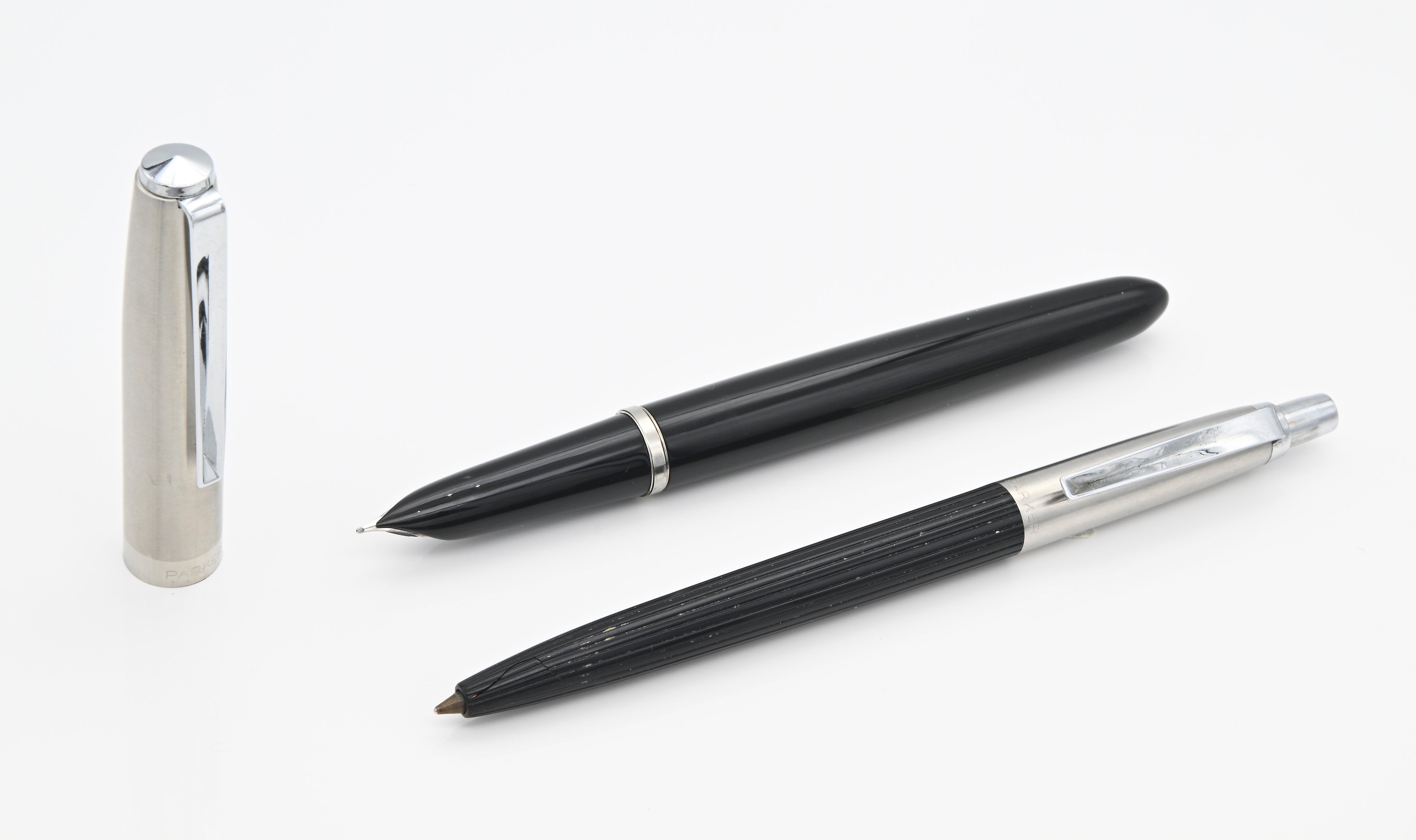Parker 21 - Penna stilografica vintage e Penna a sfera in vernice nera ed acciaio
