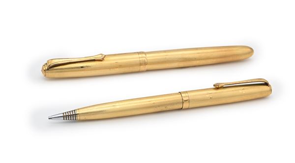 Parker 51 - Penna stilografica e portamine vintage in metallo laminato in oro giallo