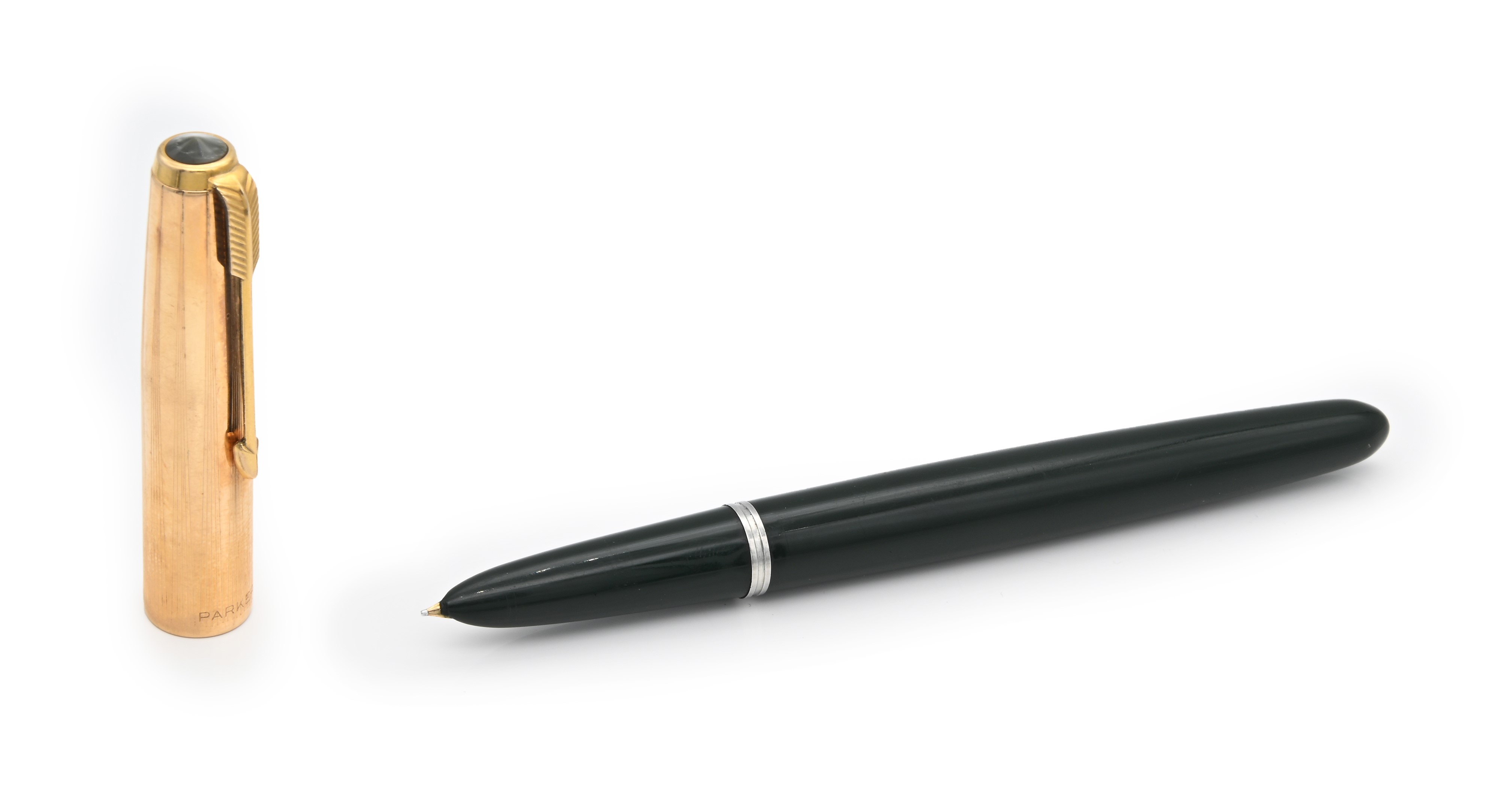 Parker 51 - Penna stilografica in vernice nera con cappuccio in metallo placcato in oro giallo 12 Kt