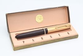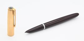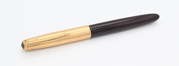 Parker 51 - Penna stilografica vintage in vernice marrone con cappuccio in metallo placcato in oro rosso 12kt