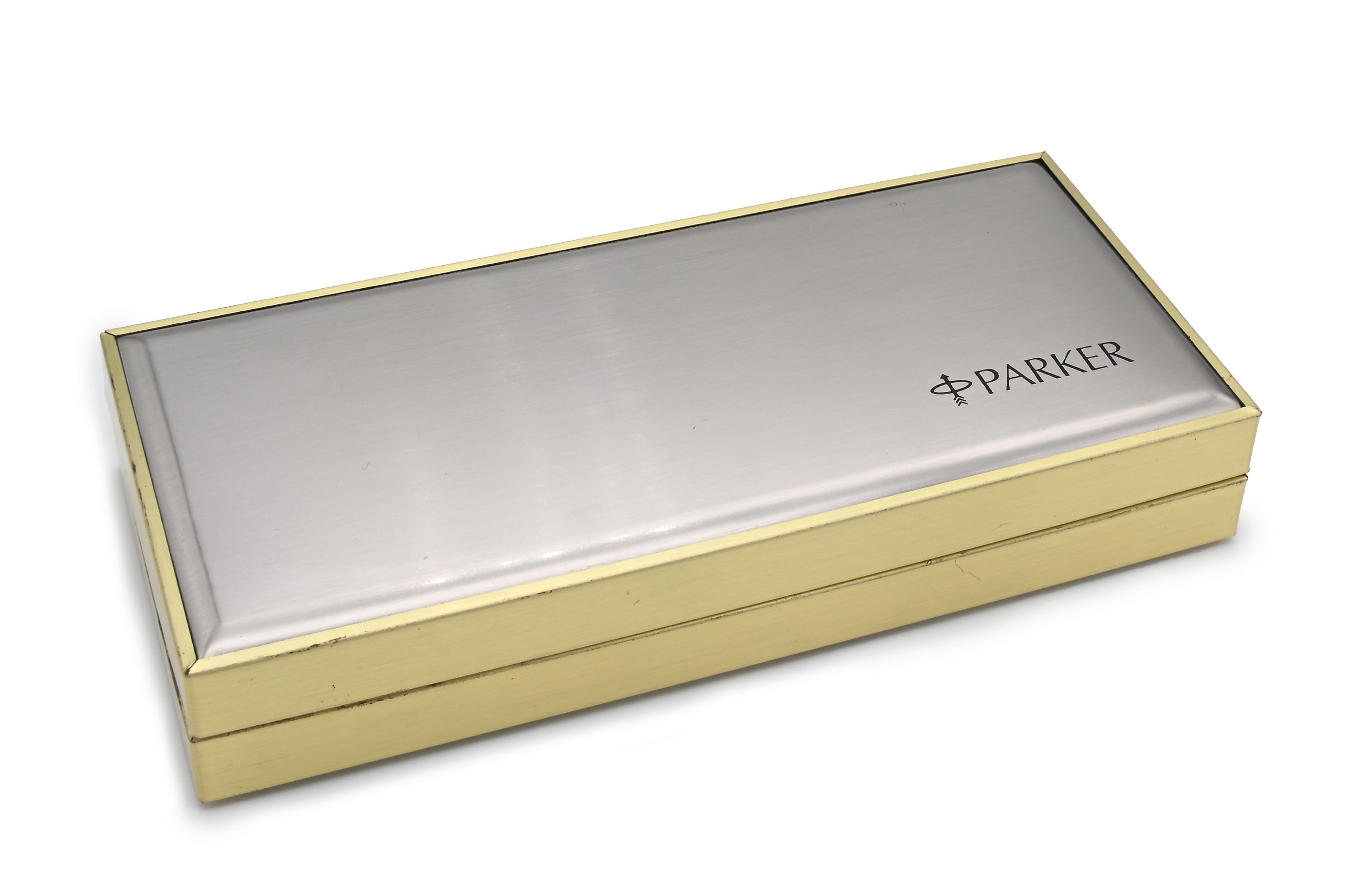 Nr A7424 Pennino F in oro giallo 14 Kt. Entro astuccio originale in metallo e contro scatola di cartone. Con astuccio contenente 4 cartucce tipo sottile colore blu