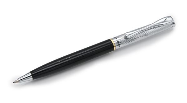 Pierre Cardin - Penna a sfera in metallo cromato e resina nera