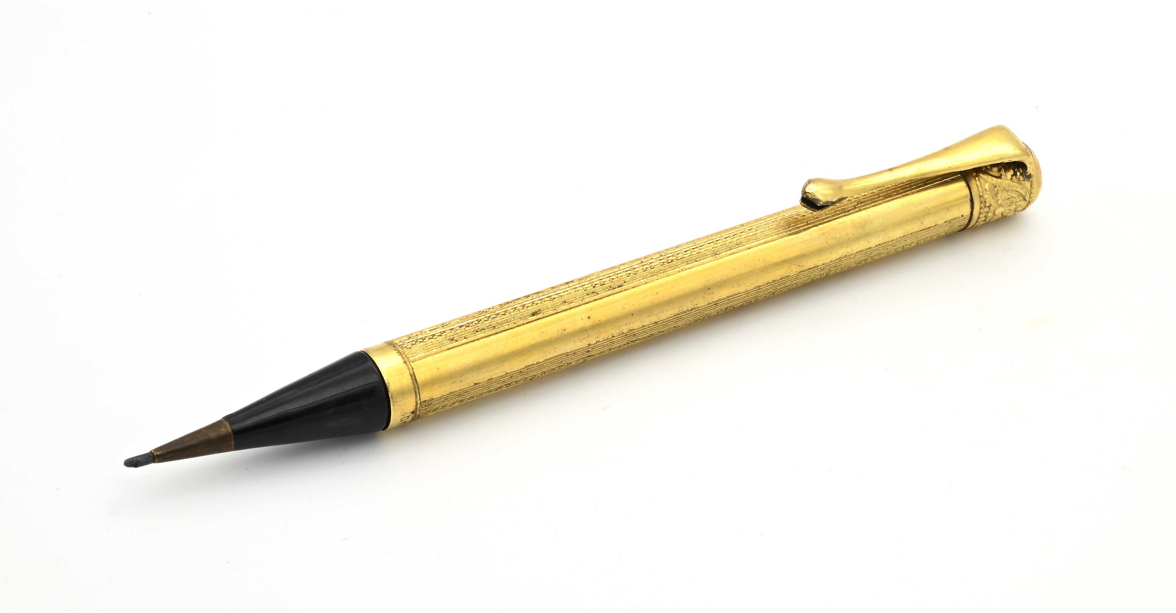 Portamine vintage in metallo laminato in oro giallo inciso e cesellato