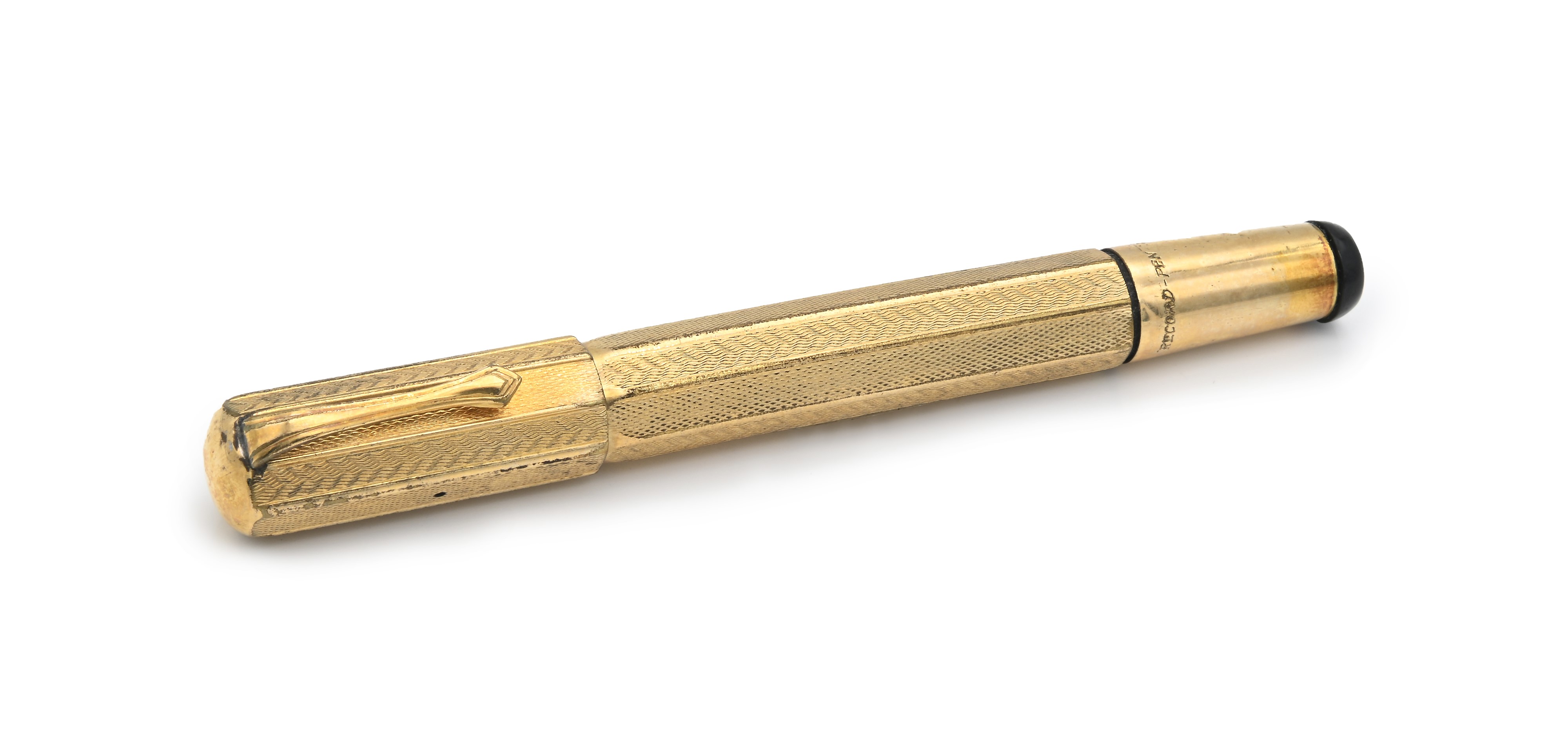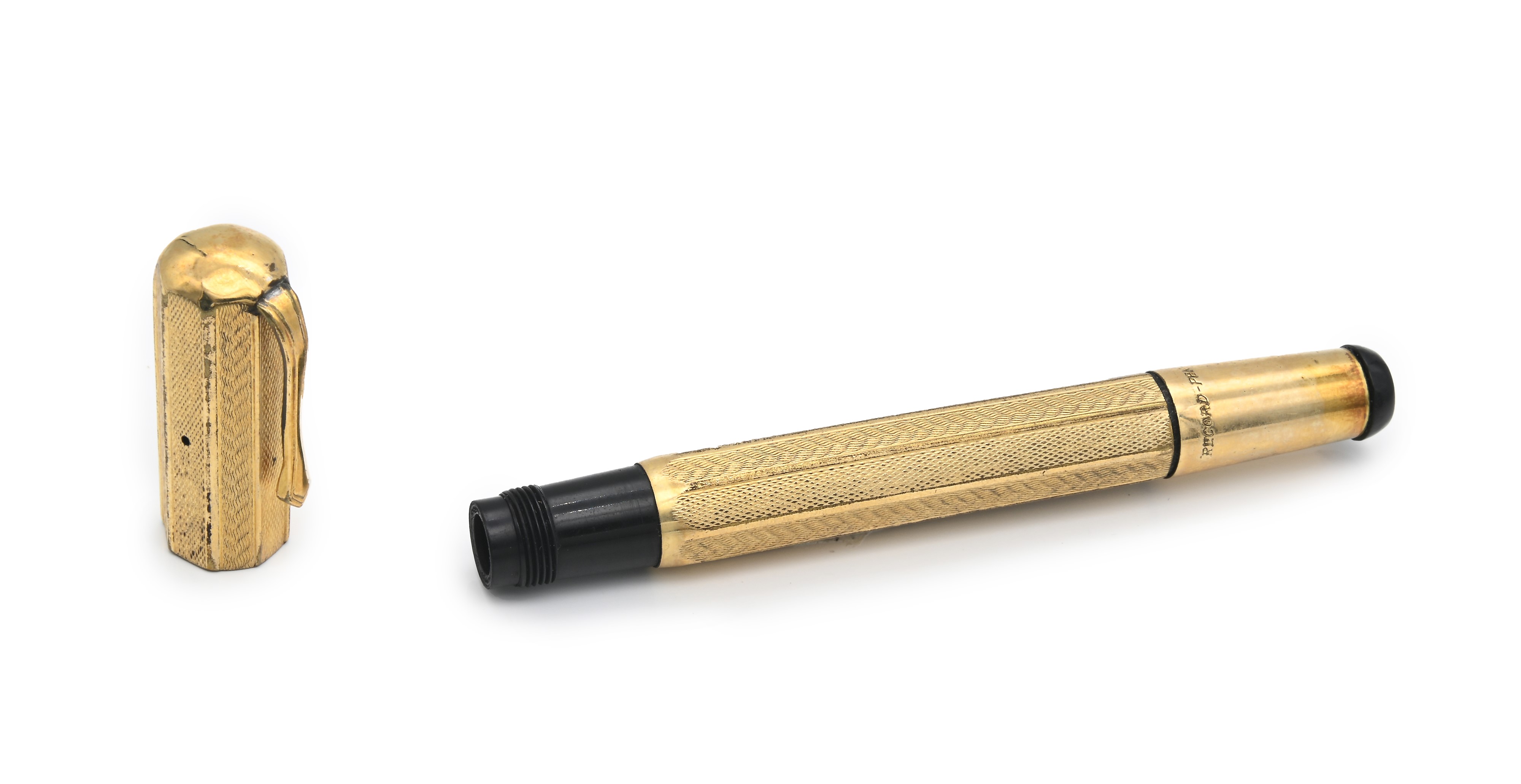 Record Pen - Penna stilografica vintage rivestita in metallo laminato in oro giallo 18 Kt, anni '20