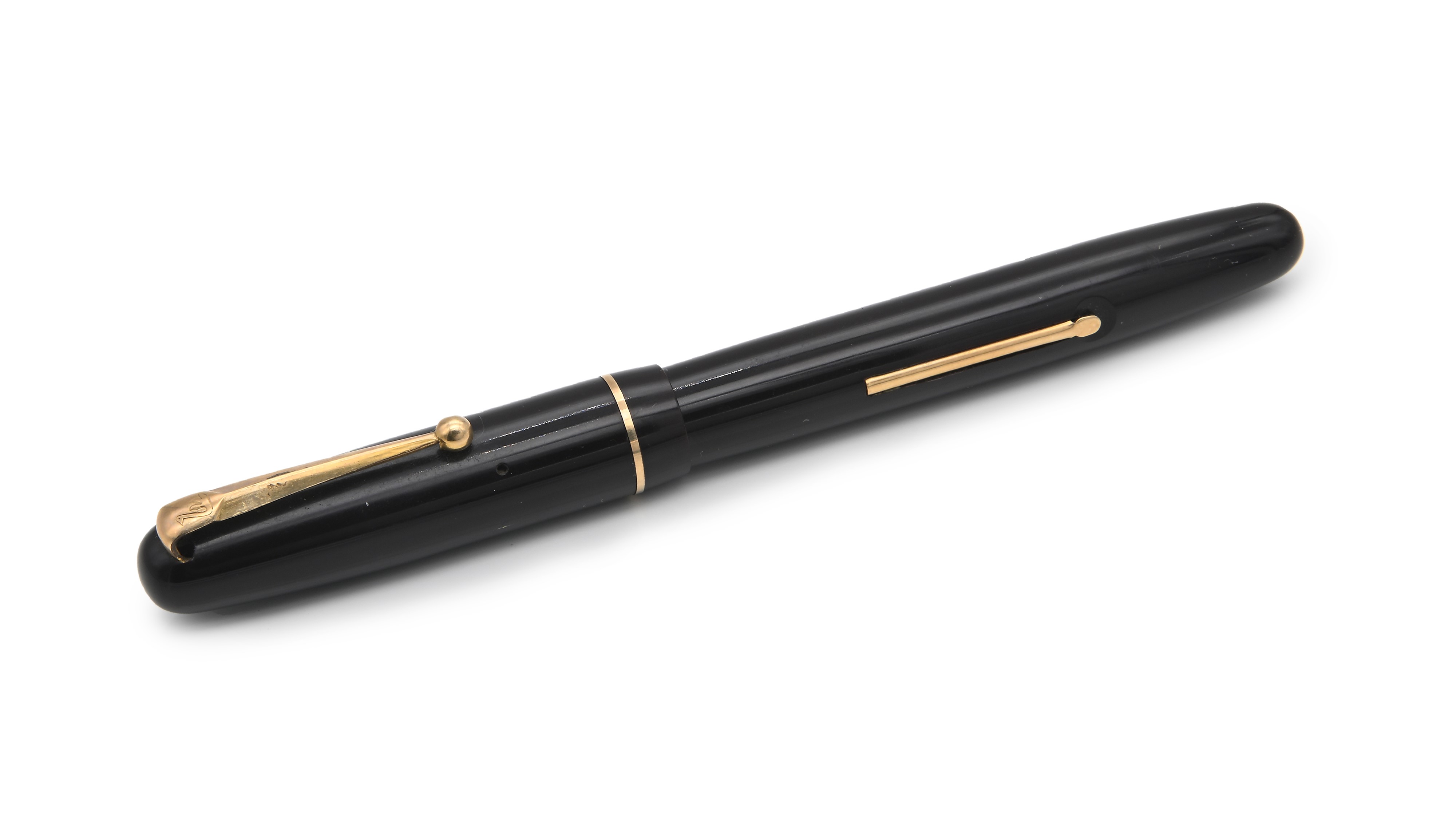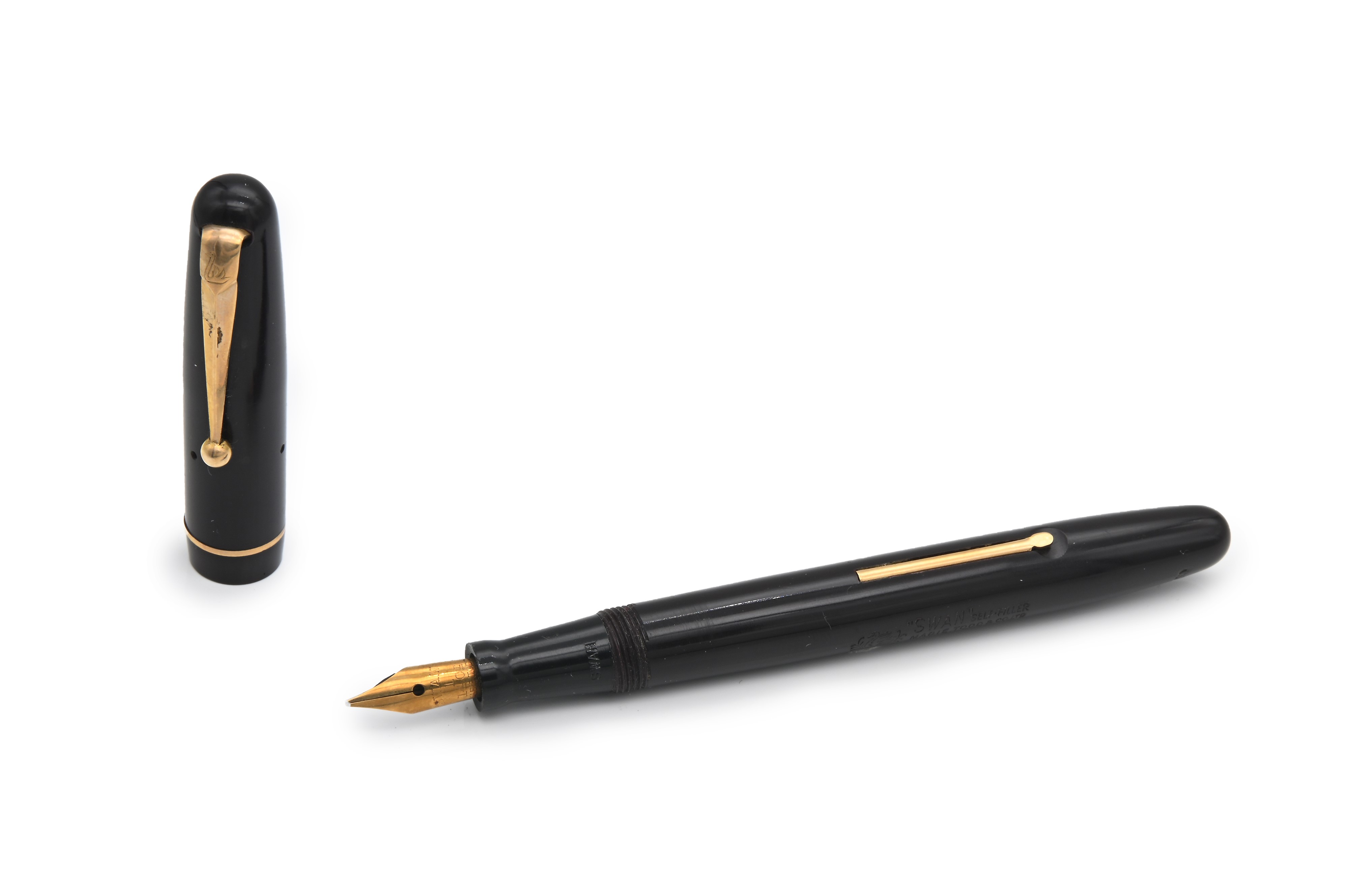 Swan Self Filler 3150 - Penna stilografica vintage in celluloide marrone scuro con finiture dorate, fine '30 inizi '40