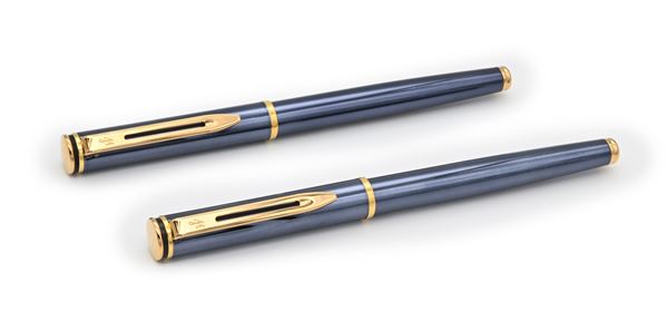 Waterman - 2 Penne stilografiche in metallo smaltato con finiture dorate