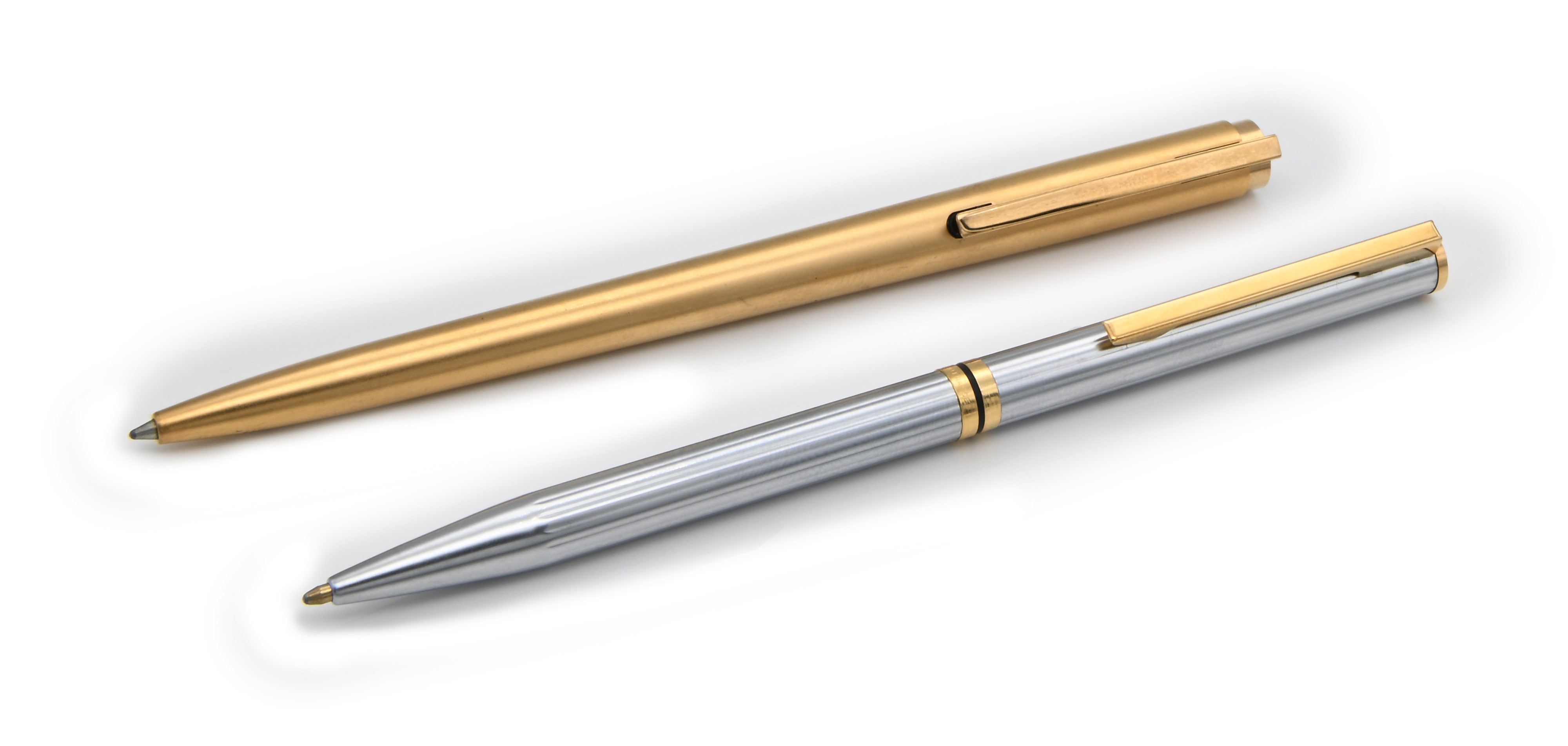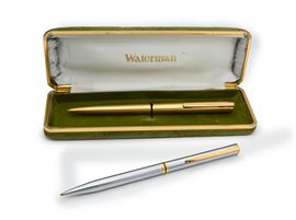 Waterman - Penna a sfera vintage in metallo placcato in oro giallo e Penna a sfera in acciaio con particolari dorati