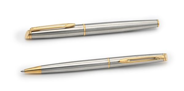 Waterman - Penna stilografica e penna a sfera in metallo satinato con finiture in metallo dorato