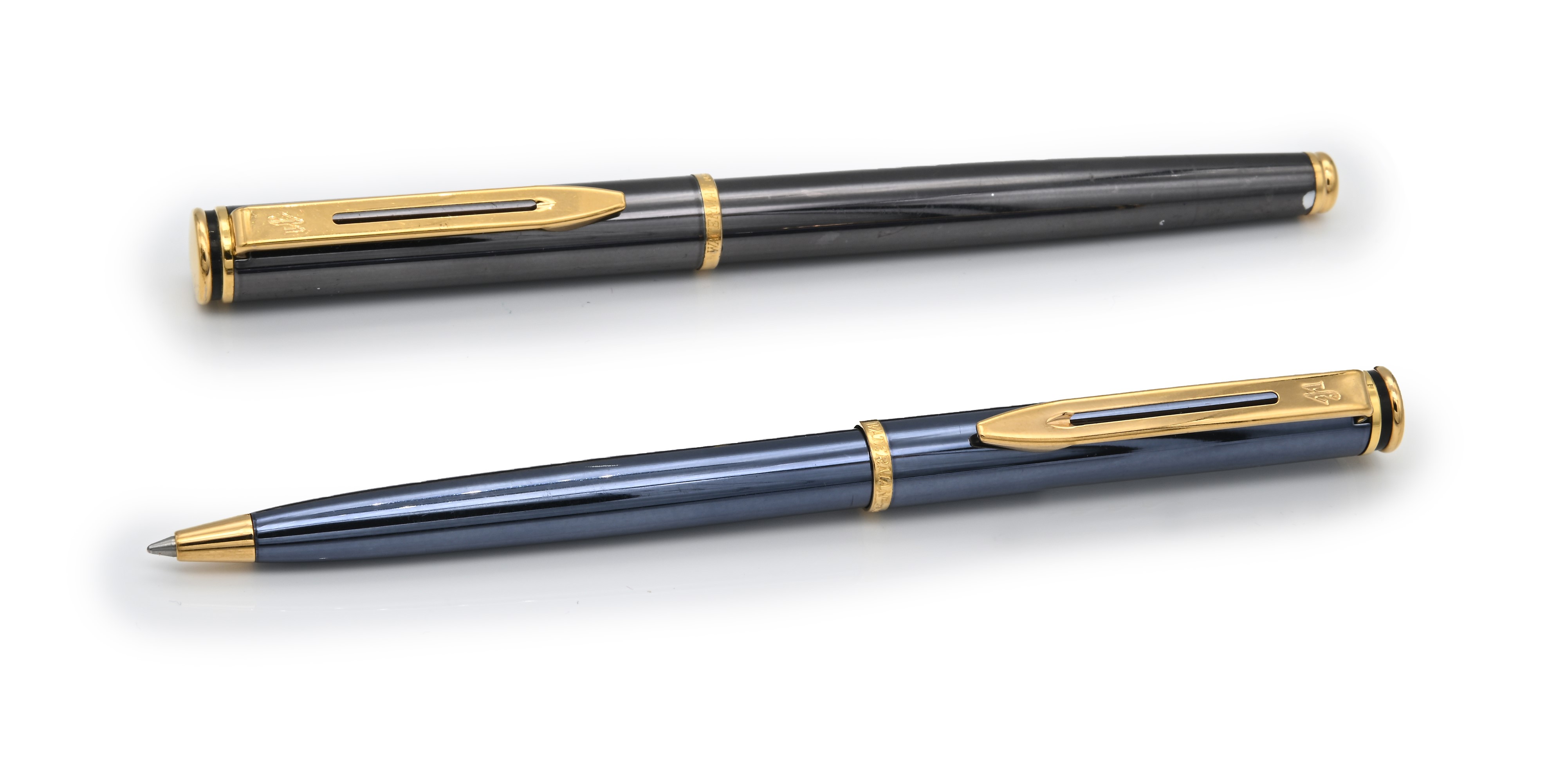 Waterman - Penna stilografica e penna a sfera in metallo smaltato con finiture dorate