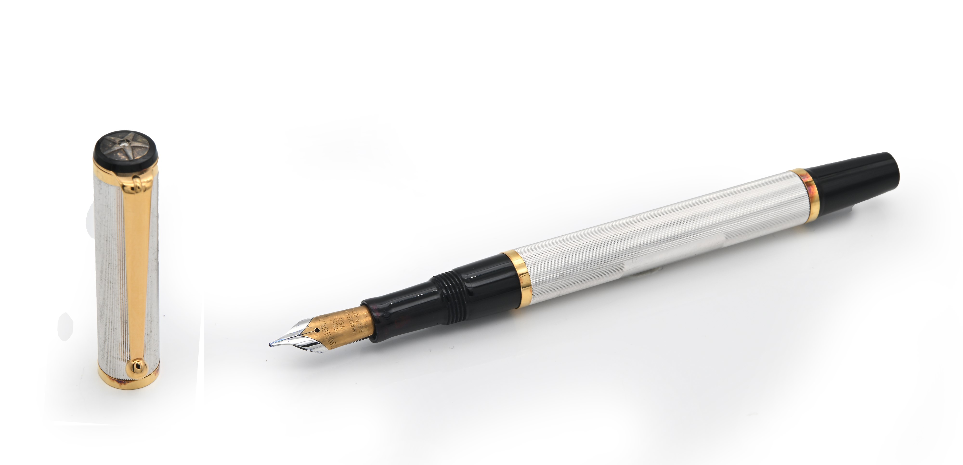 Waterman - Penna stilografica in vernice e acciaio con particolari dorati