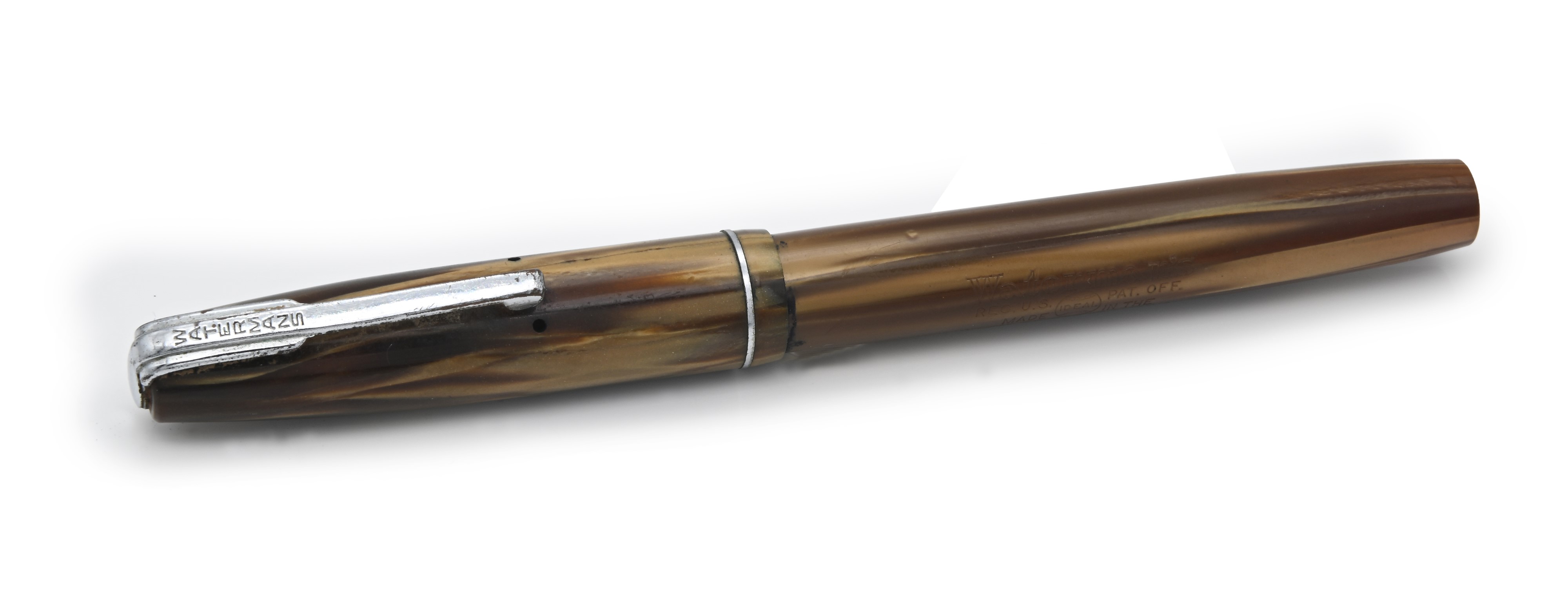 Waterman Ideal - Penna stilografica vintage in celluloide marmorizzata con particolari in metallo cromato, anni '40