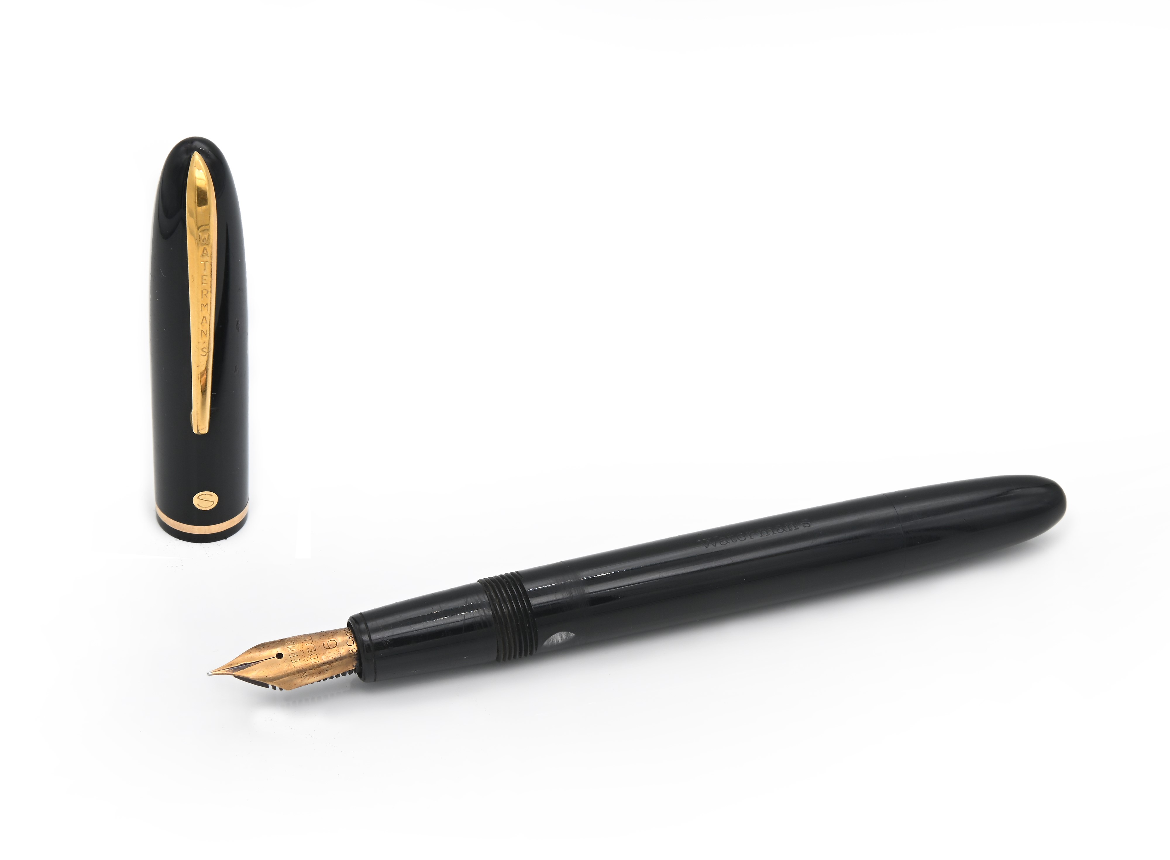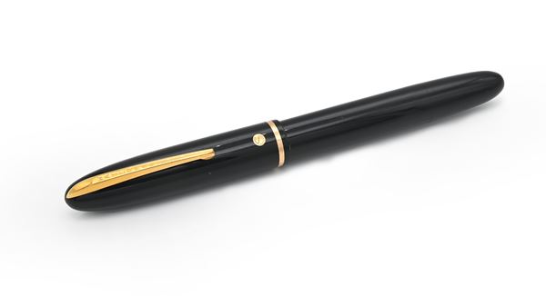 Waterman S - Penna stilografica in celluloide nera con particolari in metallo dorato