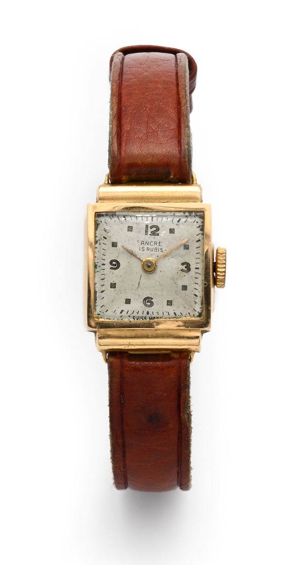 Anonimo svizzero - Orologio da polso a carica meccanica da donna di forma rettangolare in oro giallo [..]