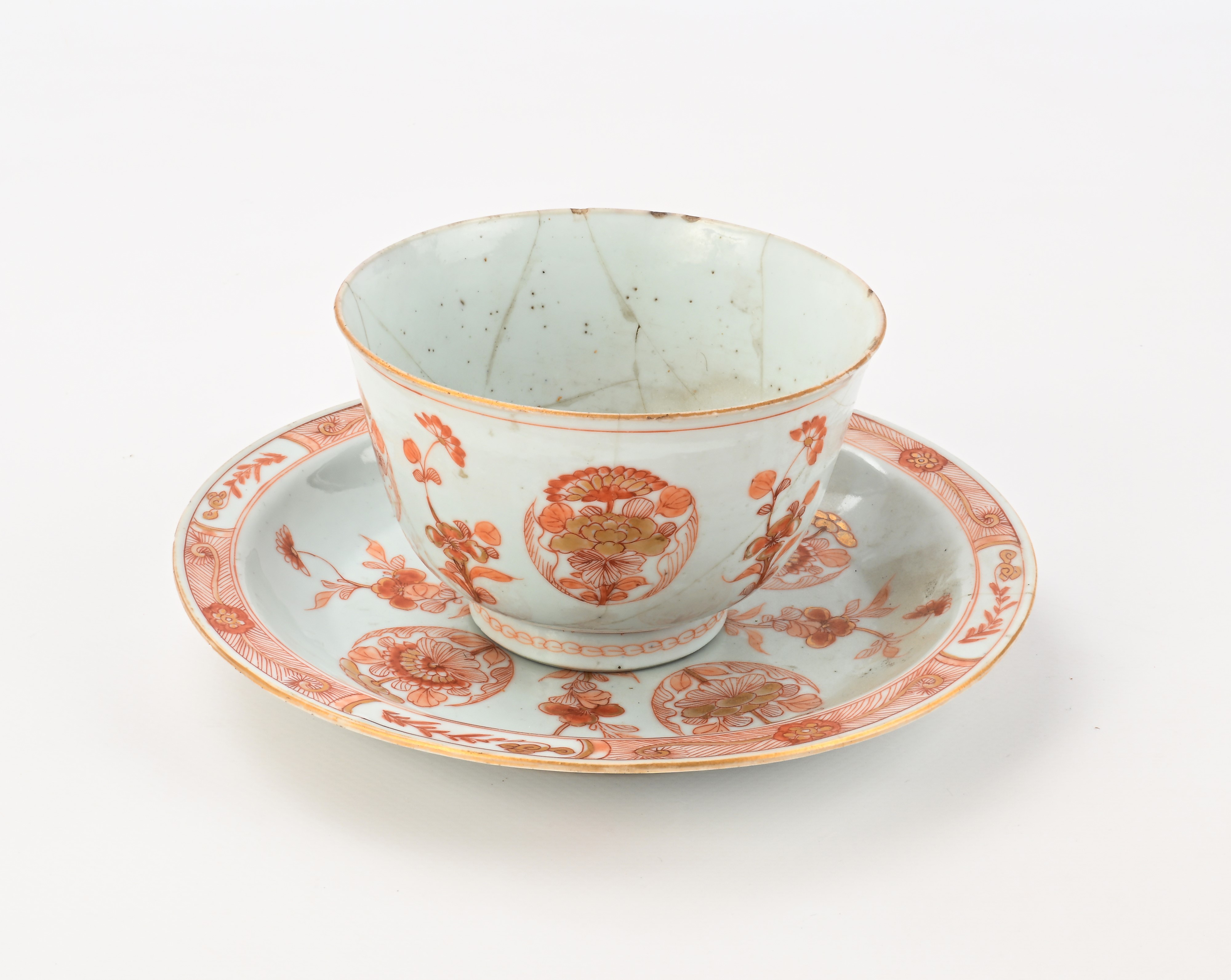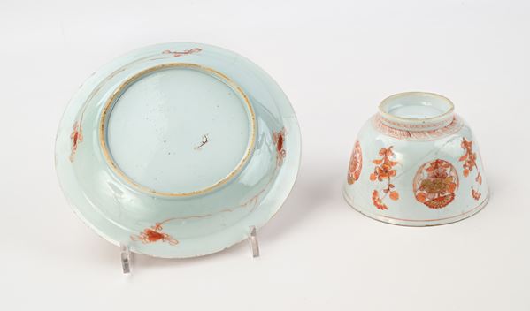 Bowl e piattino in porcellana decorata in rosso ferro, Cina, XVIII secolo