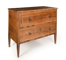 Cassettone in noce con filettature intarsiate, fine del XIX secolo