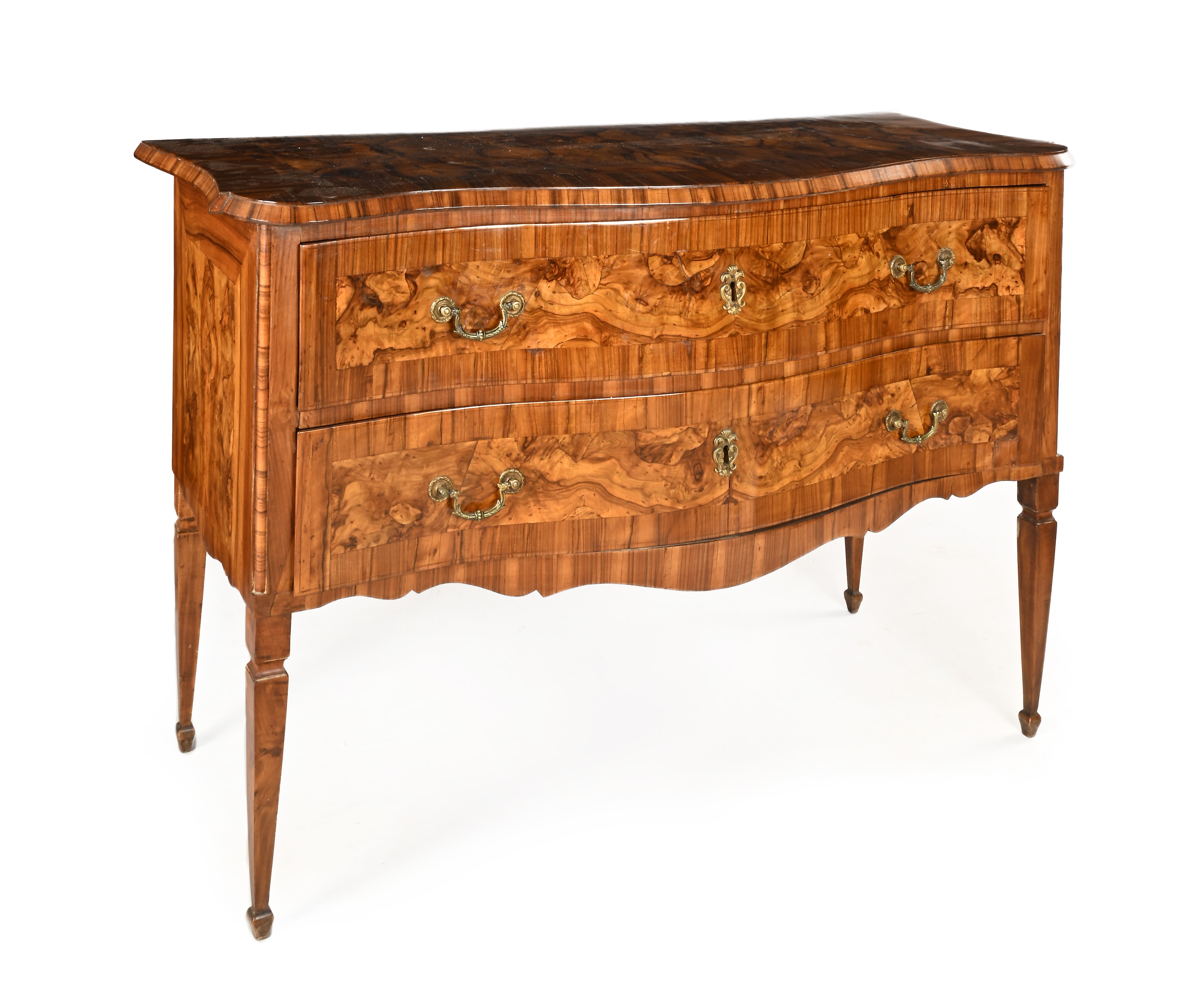 Cassettone in noce e radica di noce, Emilia, fine del XVIII secolo