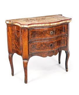 Cassettone sagomato in radica con filettature, Roma, XVIII secolo