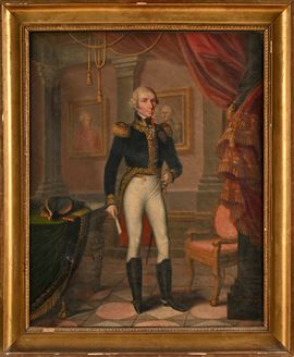 Si tratta del ritratto del Conte Ignace Thaon de Revel (Nizza, 1760 – Torino, 1835), rappresentato in uniforme da cerimonia del primo Impero. Il Conte ha ricoperto un ruolo politico di primo piano durante la Restaurazione e partecipò attivamente, sotto il comando di suo padre Charles-François, alla difesa della Contea di Nizza durante l'invasione francese. Il dipinto è opera di Frédéric Chiarle ed esiste una versione simile, con una composizione di dimensioni maggiori, esposta nella Grande Galleria del Museo della Villa Massena a Nizza.