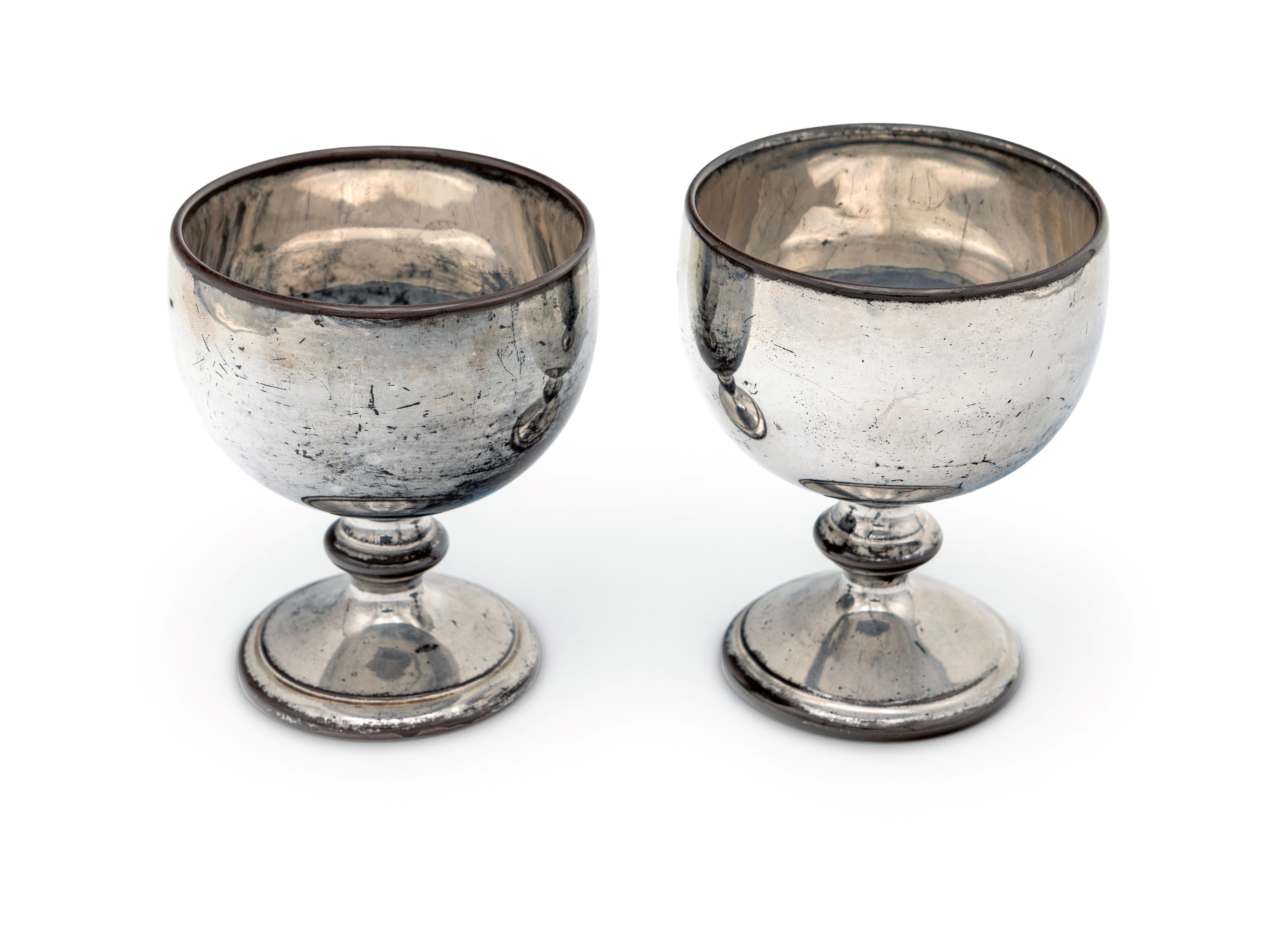 Coppia di calici in vetro argentato, seconda metà del XIX secolo
