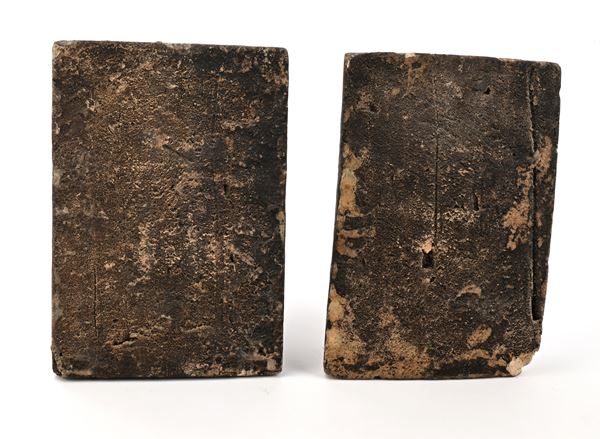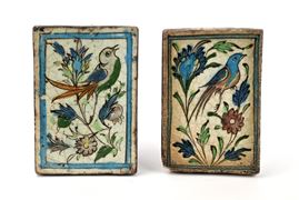 Coppia di formelle in terracotta policroma e invetriata, Persia, XVIII/XIX secolo