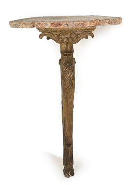 piani sagomati decorati ad imitazione del marmo, sostegno centrale sagomato impreziosito da rilievi vegetali intagliati