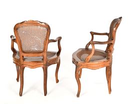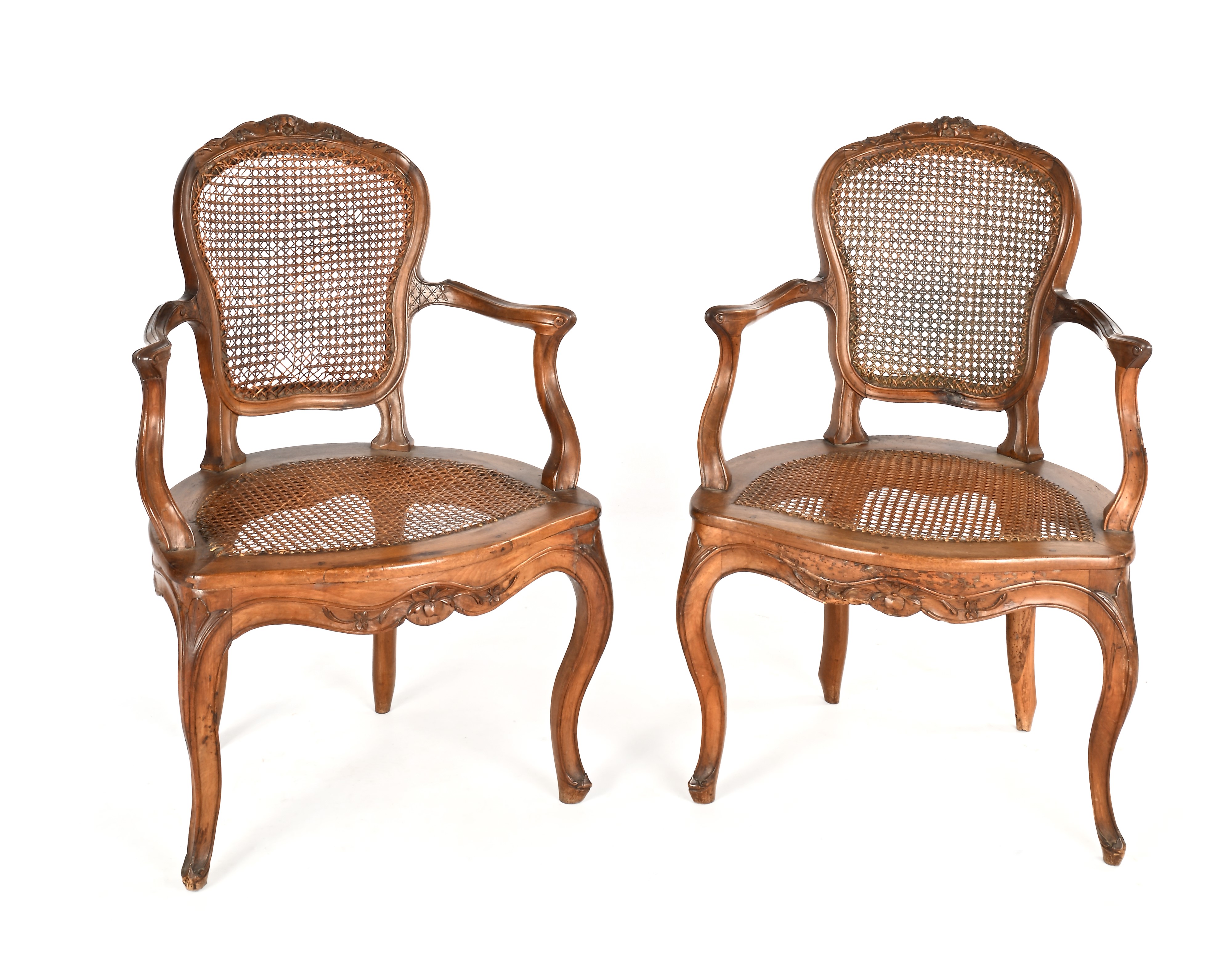 Coppia di poltroncine in noce e paglia di Vienna d'epoca Luigi XV