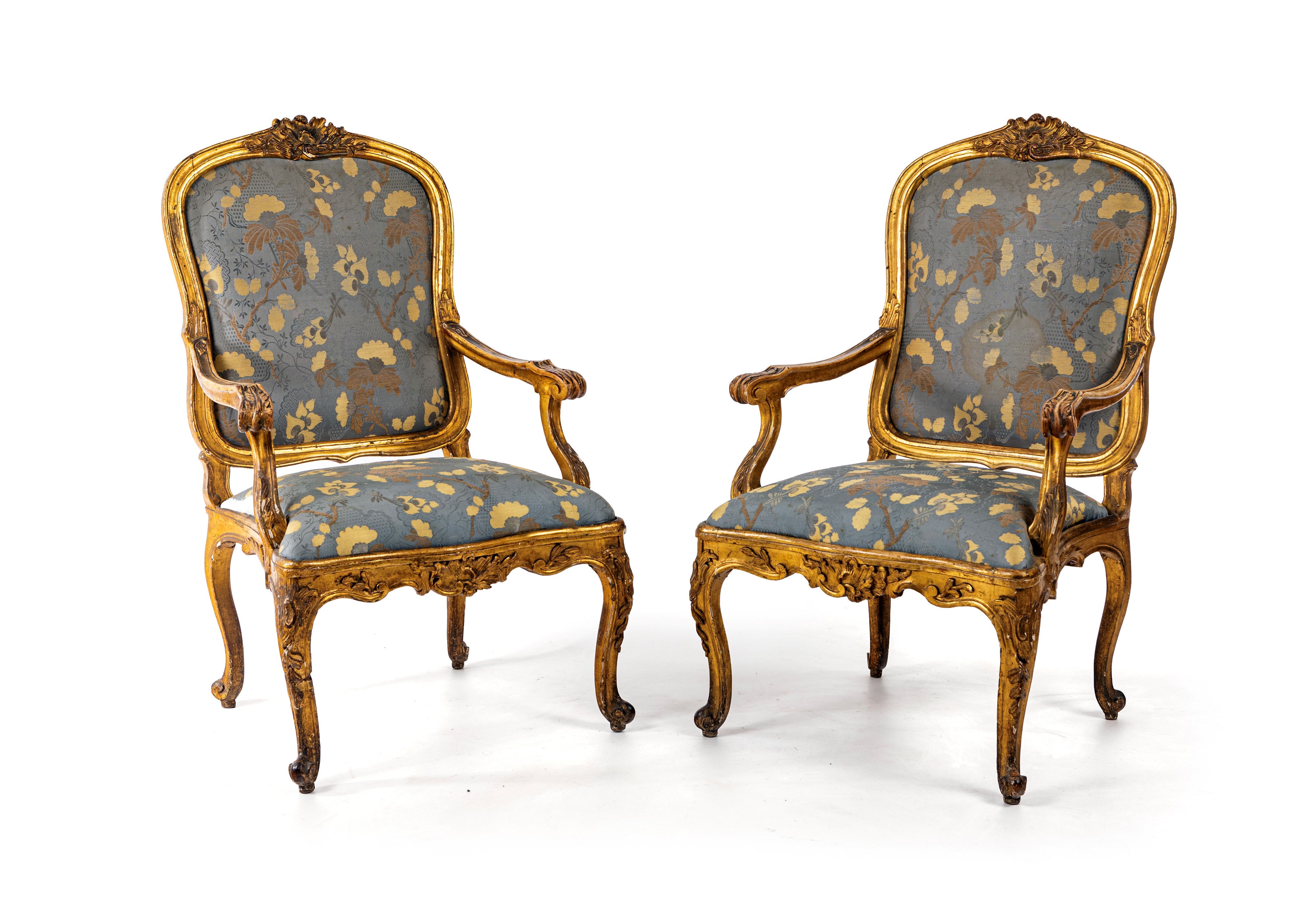 Coppia di poltrone in legno intagliato e dorato, Roma, XVIII secolo