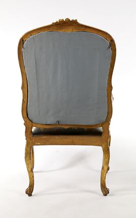 cornici sagomate e modanate centrate e decorate da minuziosi e dettagliati rilievi vegetali con ampi cartigli multiformi; schienali e sedili imbottiti, braccioli sagomati terminanti a ricciolo, così come le gambe